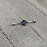 14G Spring Flower Green Blue Industrial Barbell 38mm