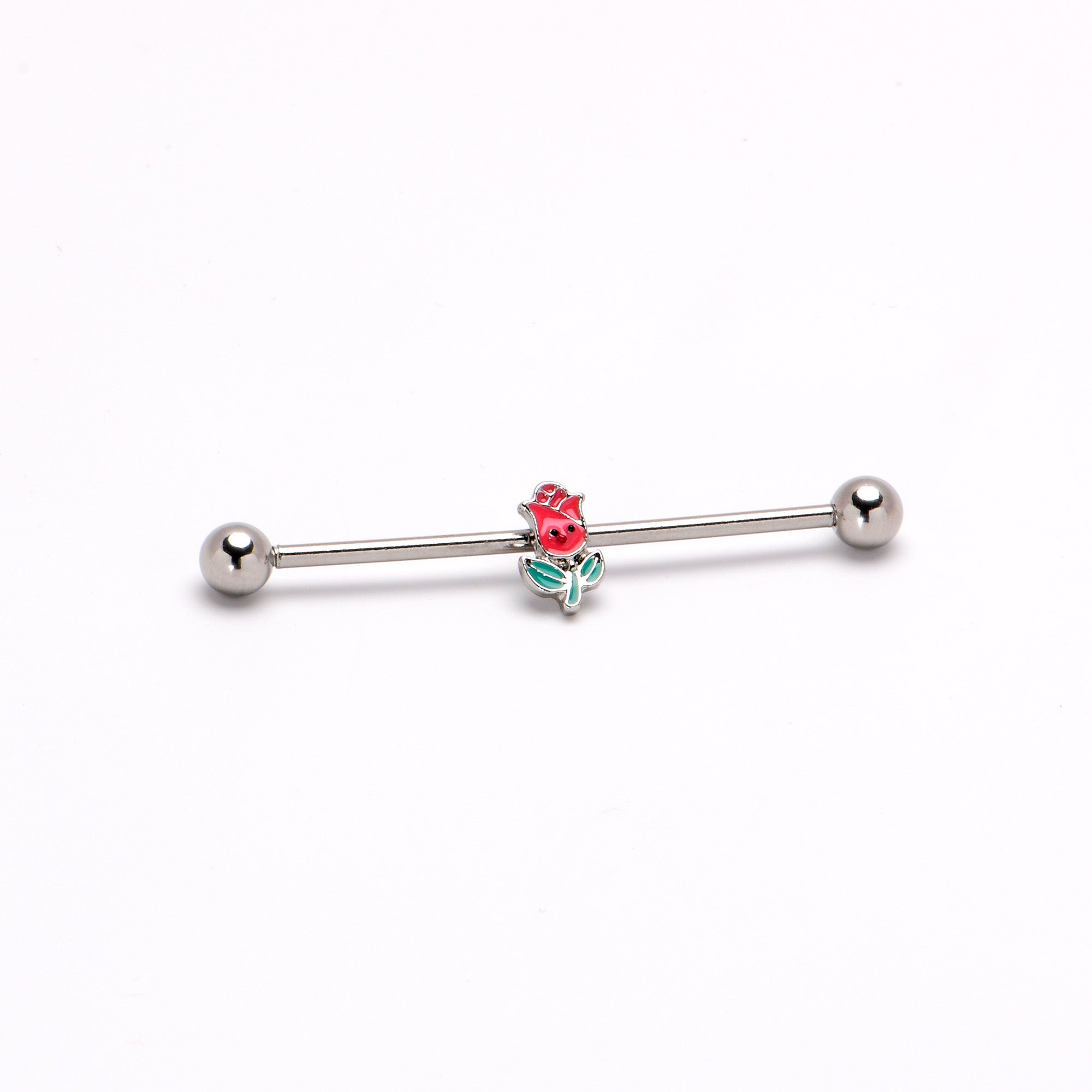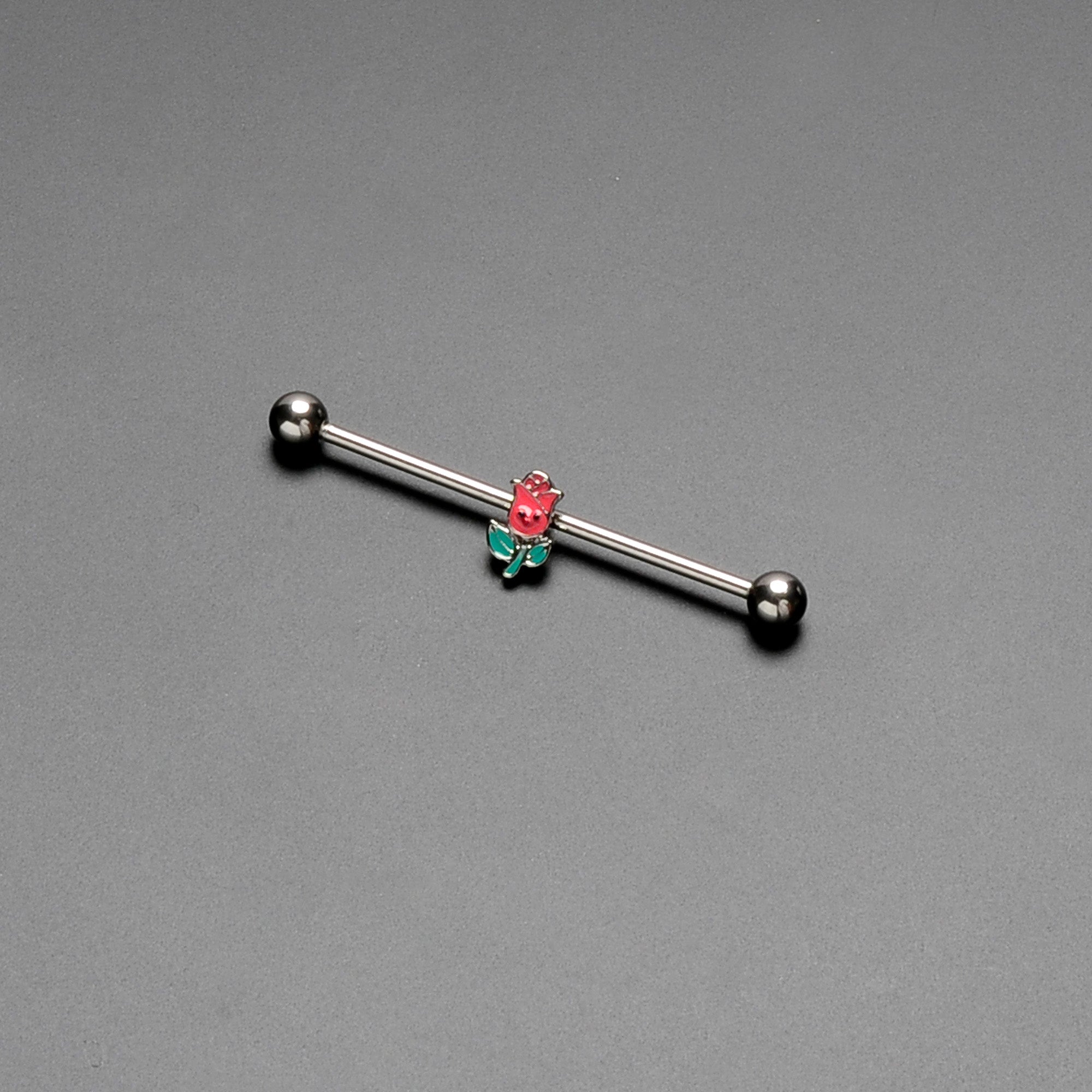 14 Gauge Sweet Happy Rose Flower Industrial Barbell 38mm