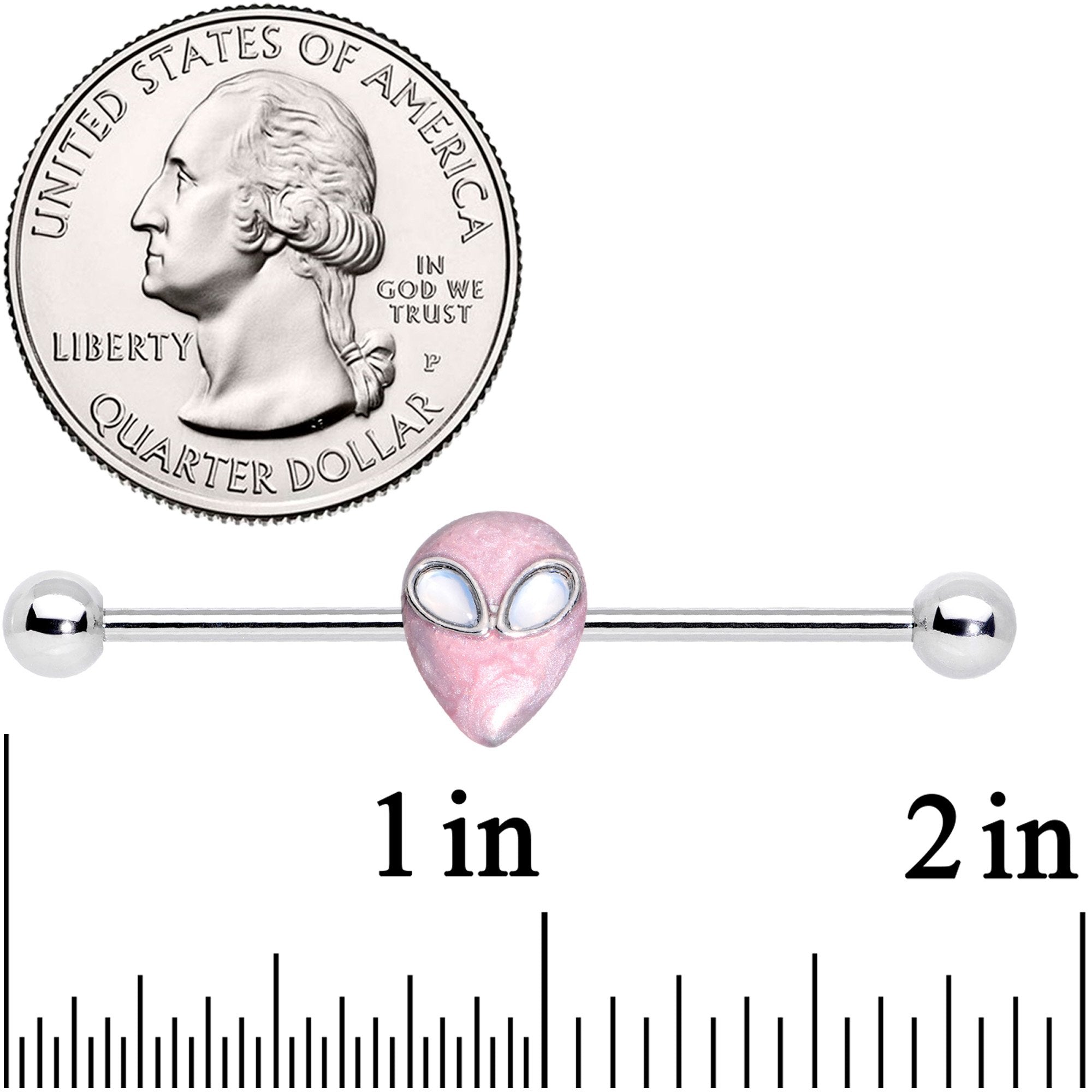 14G White Faux Opal Pink Alien Invader Industrial Barbell 38mm