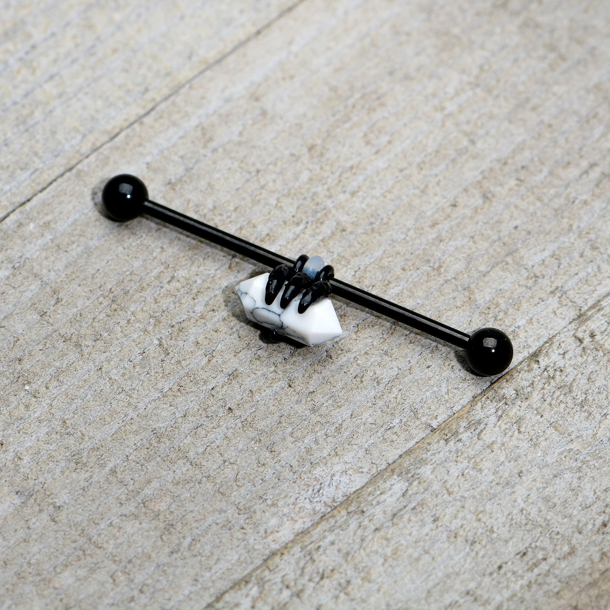 14 Gauge White Howlite Black Claw Industrial Barbell 38mm