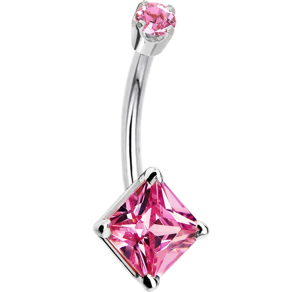 14k White Gold Pink Cubic Zirconia Princess Belly Ring
