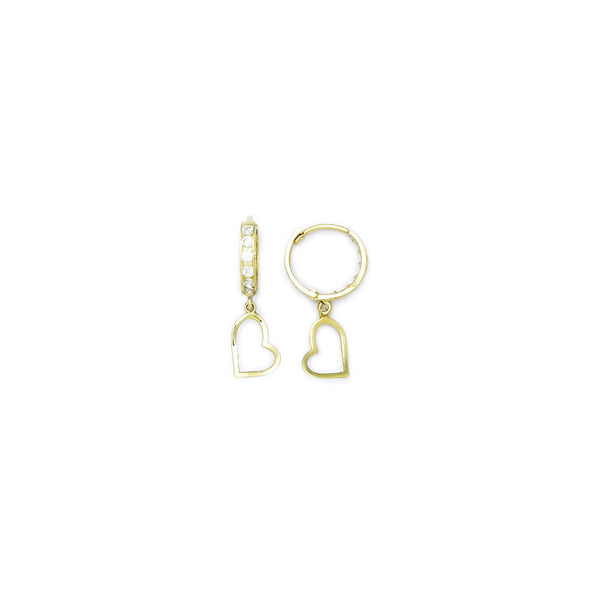 14k Yellow Gold CZ Hollow Heart Huggy Earrings