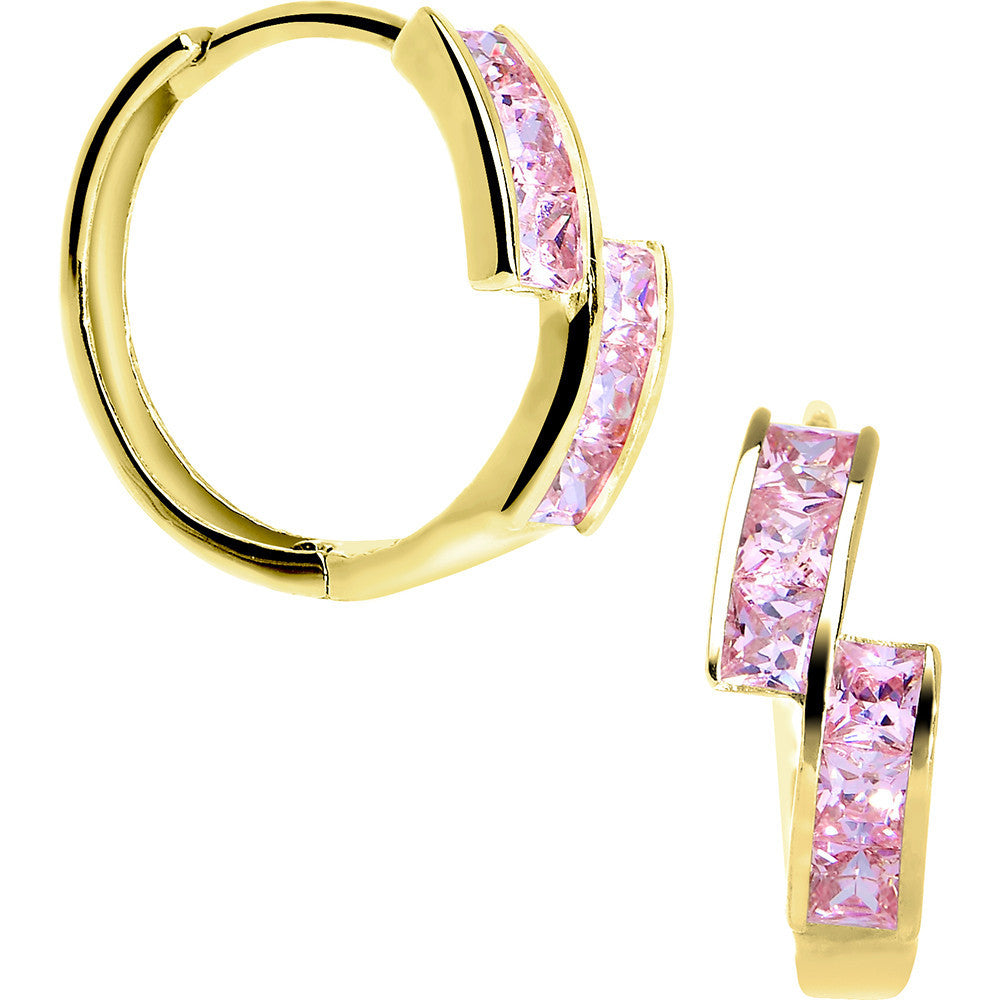 14k Yellow Gold Pink CZ Square Huggy Earrings