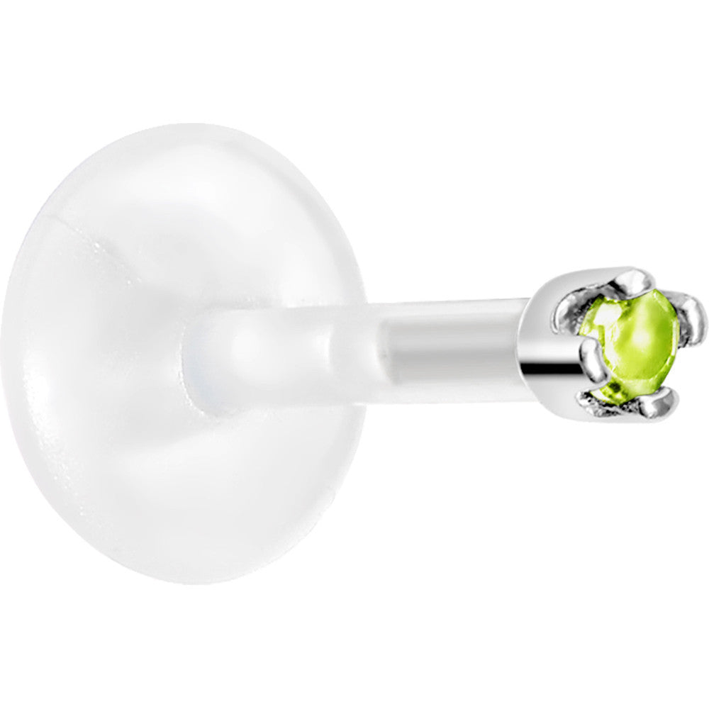 16 gauge birthstone cartilage jewelry with a 6mm barbell. This helix stud earring features a dazzling 1.5mm CZ in a prong setting with a comfortable Bioplast shaft. Quality solid gold body piercing jewelry.