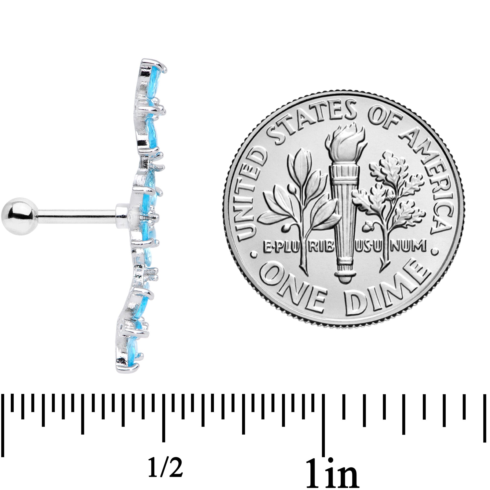 16 Gauge 1/4 Aqua CZ Gem Tri Flower Cartilage Tragus