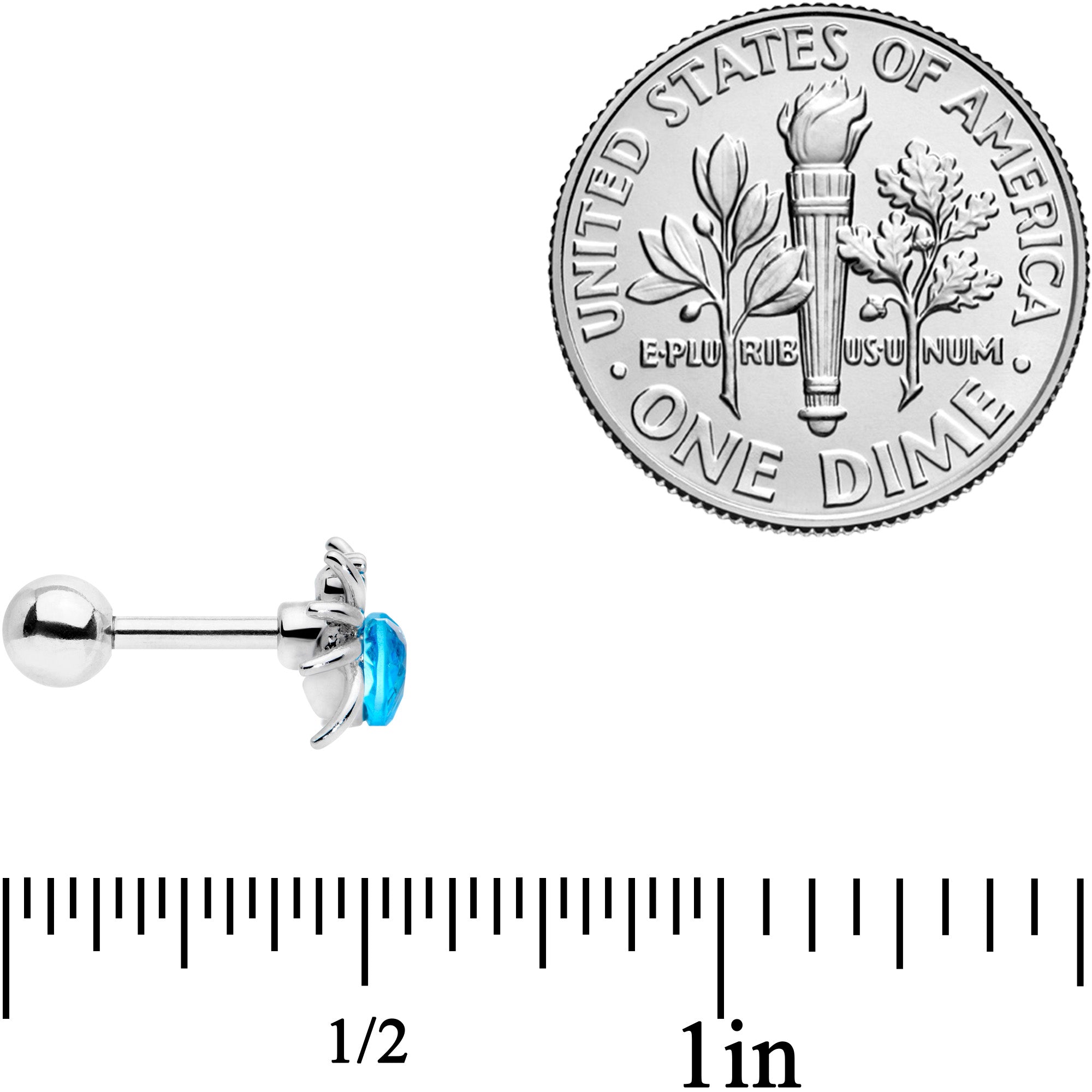 This spider body jewelry will give you the Halloween shivers.....but not shivers of fear! This 16 gauge cartilage stud is made with a 6mm durable 316L surgical grade stainless steel straight barbell with a 4mm ball end. It features a spider charm with the body made of a Valentine's Day heart-shaped blue gem and the head composed of a smaller blue gem. This little creature works well in multiple piercings including tragus, helix, some conch piercings, and more. So whether you cherish creepy crawlies or appreciate arachnids, this tragus stud is sure to snare you in its web!