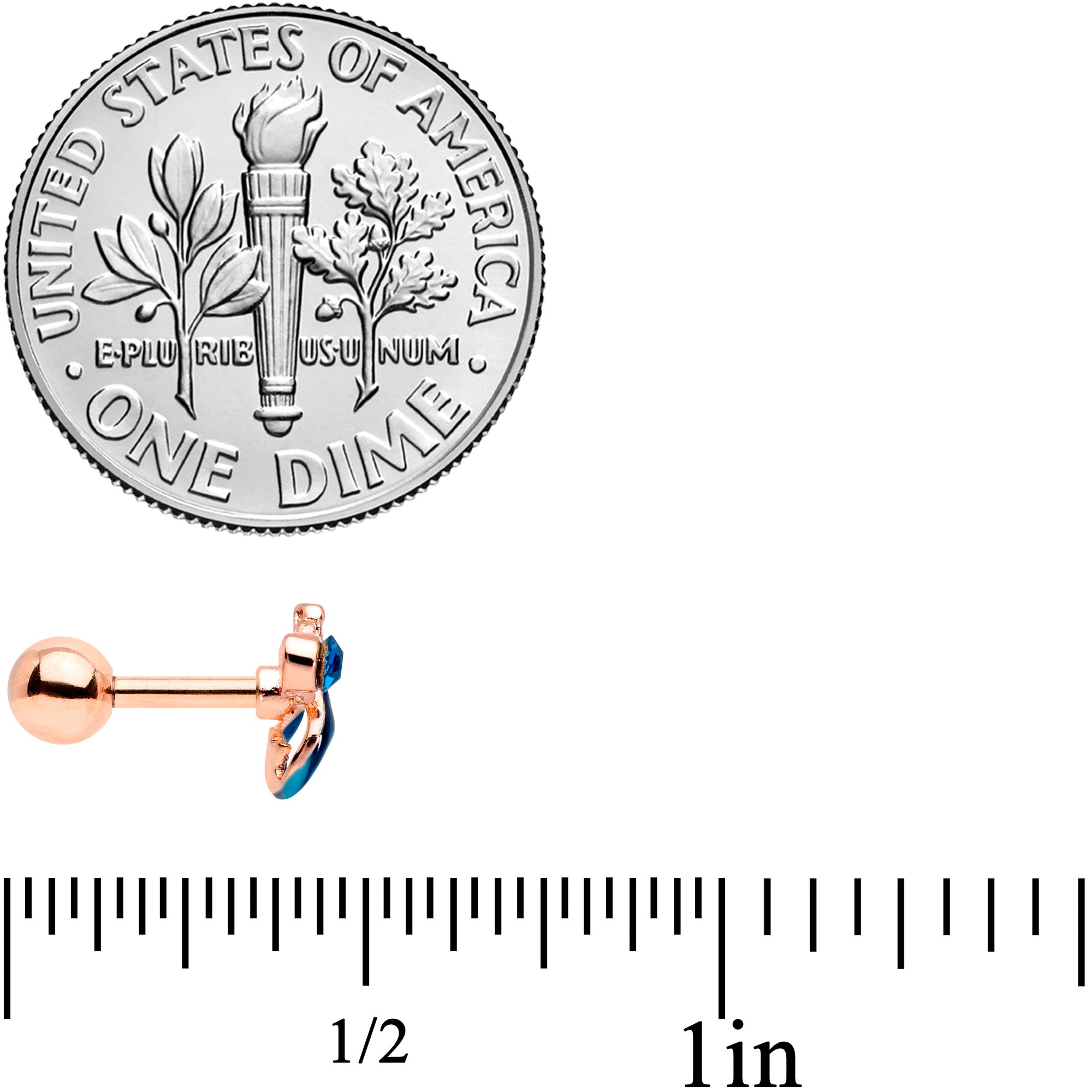16 Gauge 1/4 Aqua Gem Rose Gold Tone Mermaid Cartilage Tragus