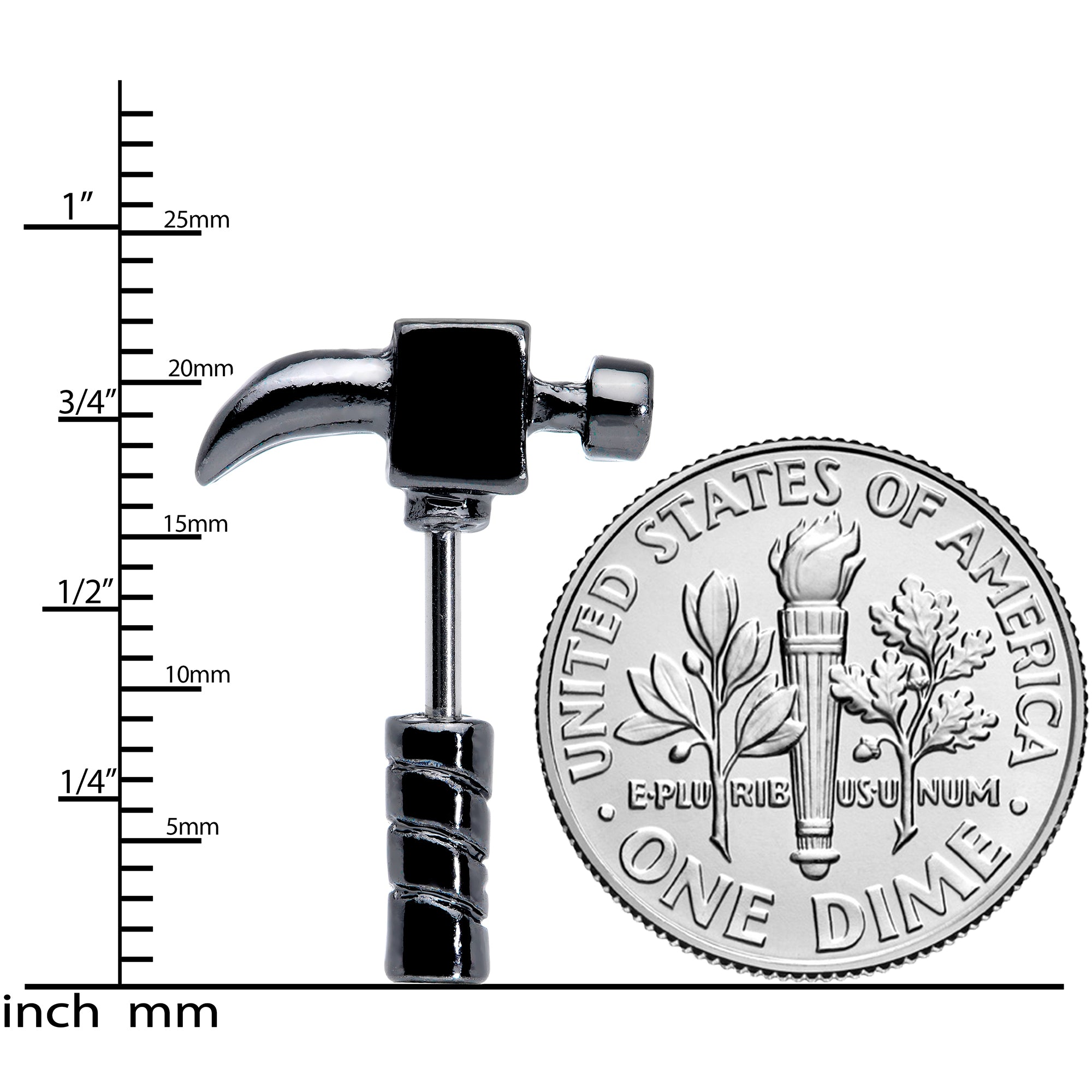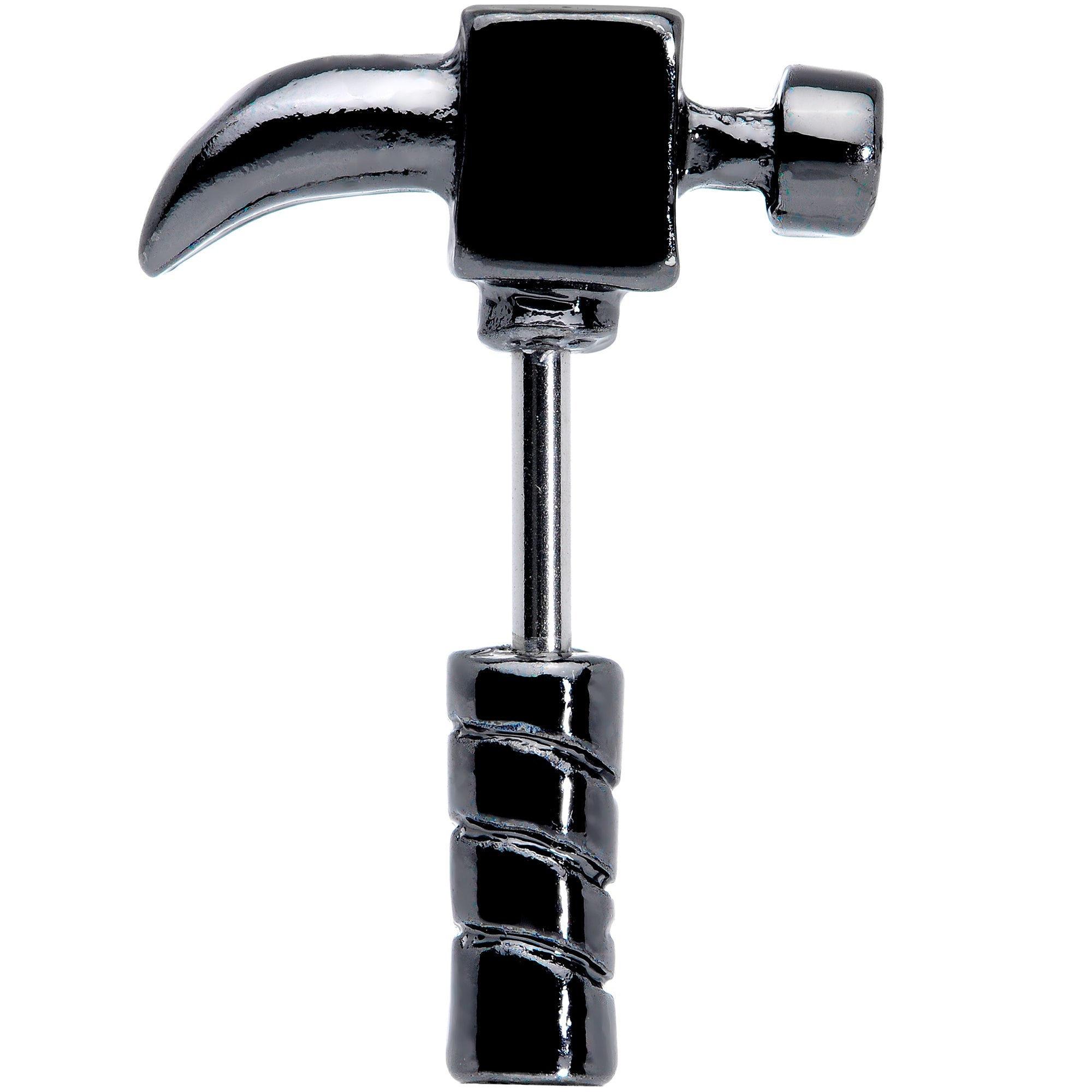 Don't feel like a tool with boring cartilage jewelry....nail your look with this 16 gauge tragus stud! It's made with a 6mm durable 316L surgical grade stainless steel straight barbell. It's made in a trompe l'oiel style, with one end featuring the black claw end of a standard hammer. The other end is made to look like the hammer's matching black handle, giving the effect that the entire hammer goes through your piercing. And you can rock this optical illusion in multiple piercings including helix, tragus, and some conch piercings. If you're bored with the same old look, get hammered with this mind-bending cartilage stud!