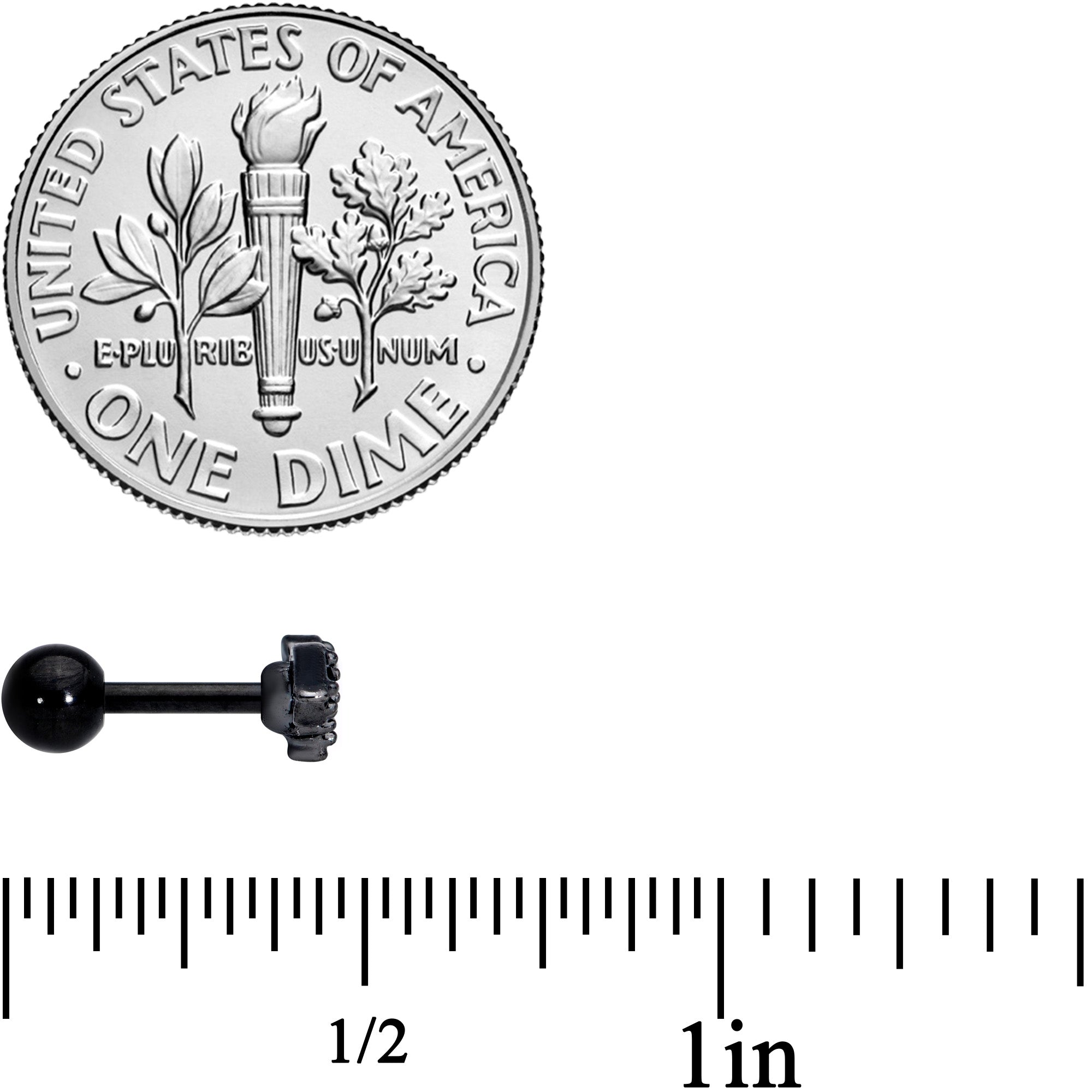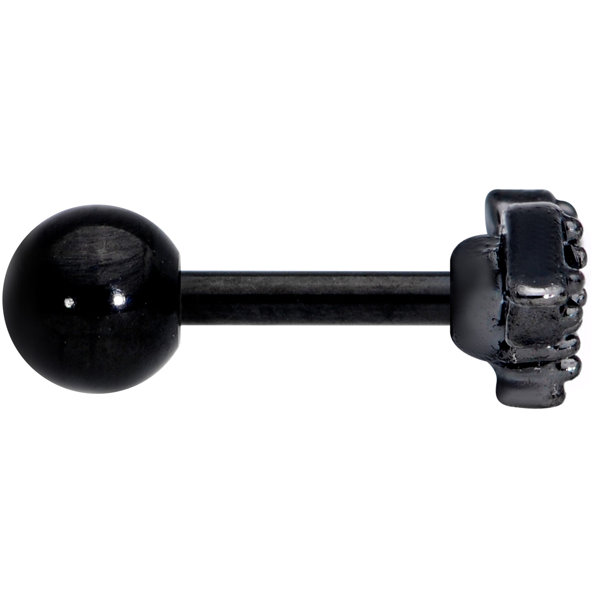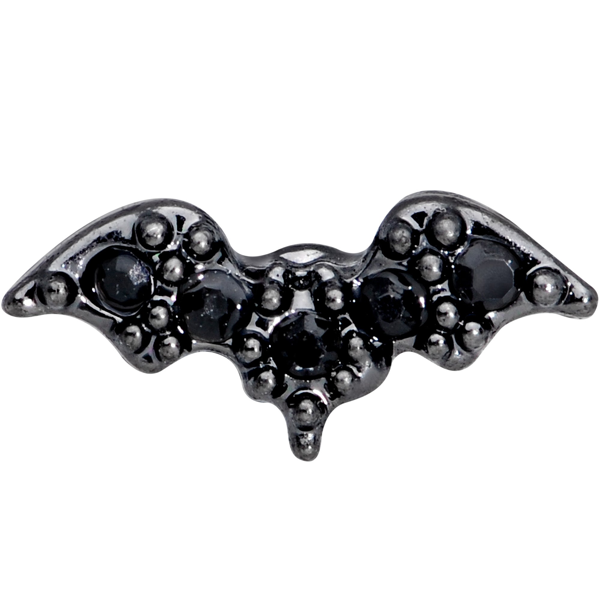 If you've got a fondness for the things that go bump in the Halloween night, you'll go absolutely batty for this 16 gauge tragus stud! It's made with a 6mm black PVD over 316L surgical grade stainless steel straight barbell with a 4mm ball end. It features a small bat charm set with black gems for contrast and visual impact. And this bat looks beautiful in multiple piercings including tragus, helix, and some conch piercings. Add a touch of gothic charm to your cartilage piercing the Halloween with this beautiful bat body jewelry!