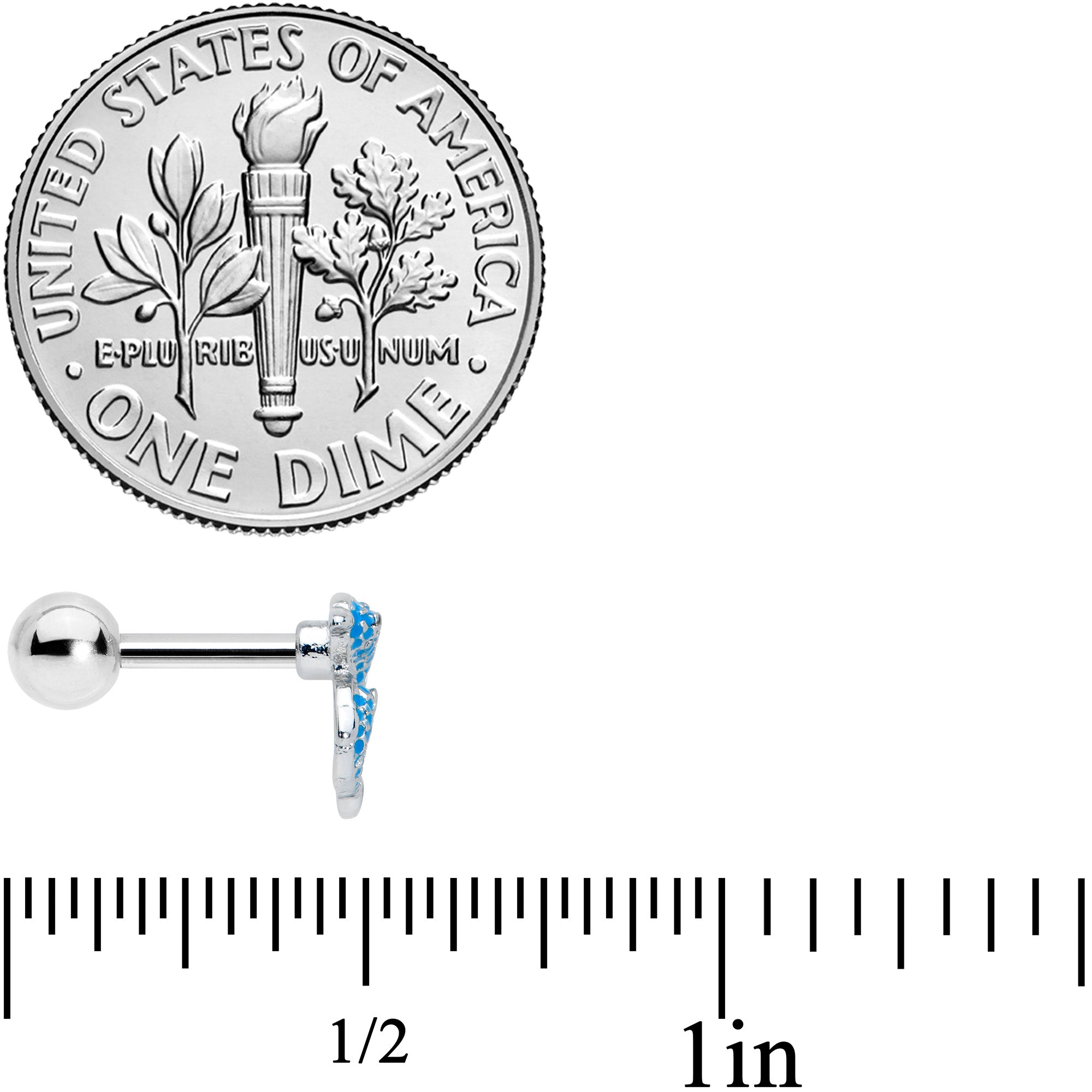 You'll be leaping for joy when you're rocking this 16 gauge tragus stud! It's made with a 6mm durable 316L surgical grade stainless steel straight barbell with a 4mm ball end. It features a pair of leaping dolphins, set with blue inlay for realistic color and featuring a tiny black gem eye. You can even rock it in multiple piercings including tragus, helix, and some conch piercings. Whether you're daffy for dolphins or mad for marine mammals, this delightful dolphin cartilage piercing jewelry is sure to please!