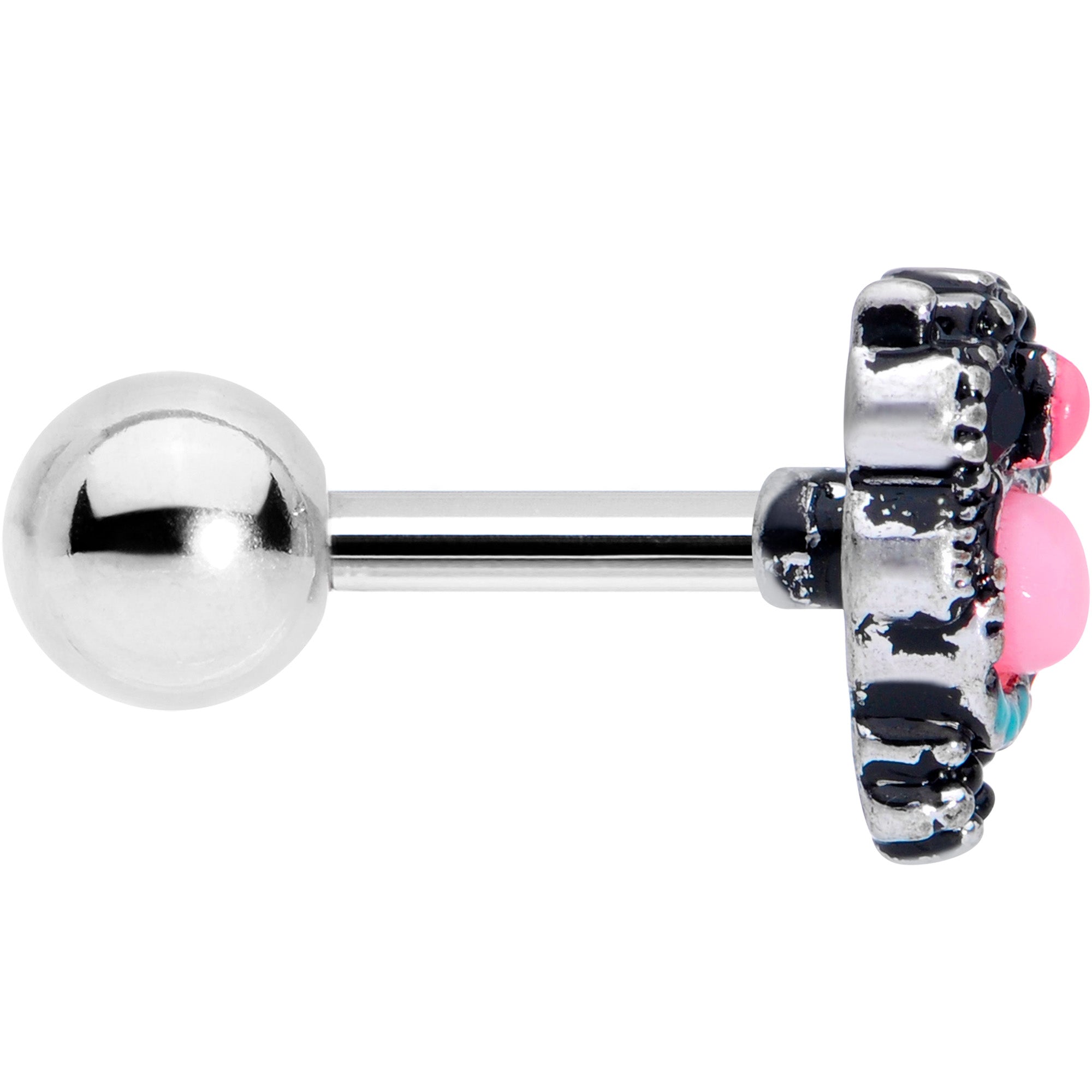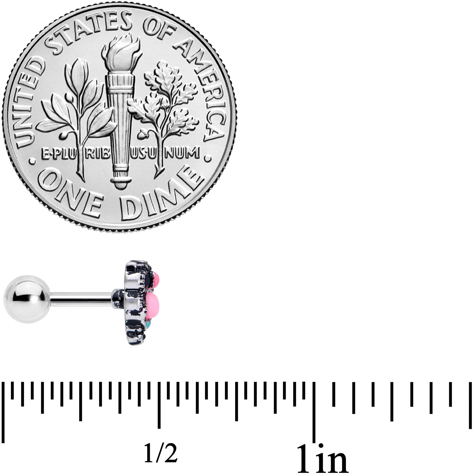The feathered friend on this 16 gauge cartilage stud will have your cartilage piercing looking fine! It's made with a 6mm durable 316L surgical grade stainless steel straight barbell with a 4mm ball end. It features an owl charm with black gem eyes. The owl is set with a pink orb on its belly and blue orbs beneath it for truly striking color contrast. You can rock this owl in multiple piercings including helix, tragus, and some conch piercings. It's sure to bring a hit of vibrant style to your cartilage piercing!
