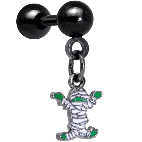 16G 1/4 Black Green Mummy Halloween Dangle Cartilage Earring