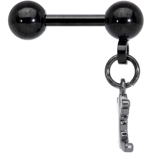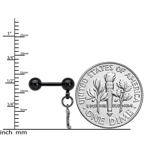 The mummy on this 16 gauge cartilage jeweley will have your piercing looking perfect for Halloween! It's made with a 6mm black plated over 316L surgical grade stainless steel straight barbell with 4mm ball ends. Dangling from one ball end is a mummy charm with gruesome green skin and white wrappings, arms spread as though it's ready to grab someone! And you can rock this barbell earring in multiple piercings including tragus, helix, and some conch piercings. With such creepy detailing, this mummy will have your piercing looking petrifying!