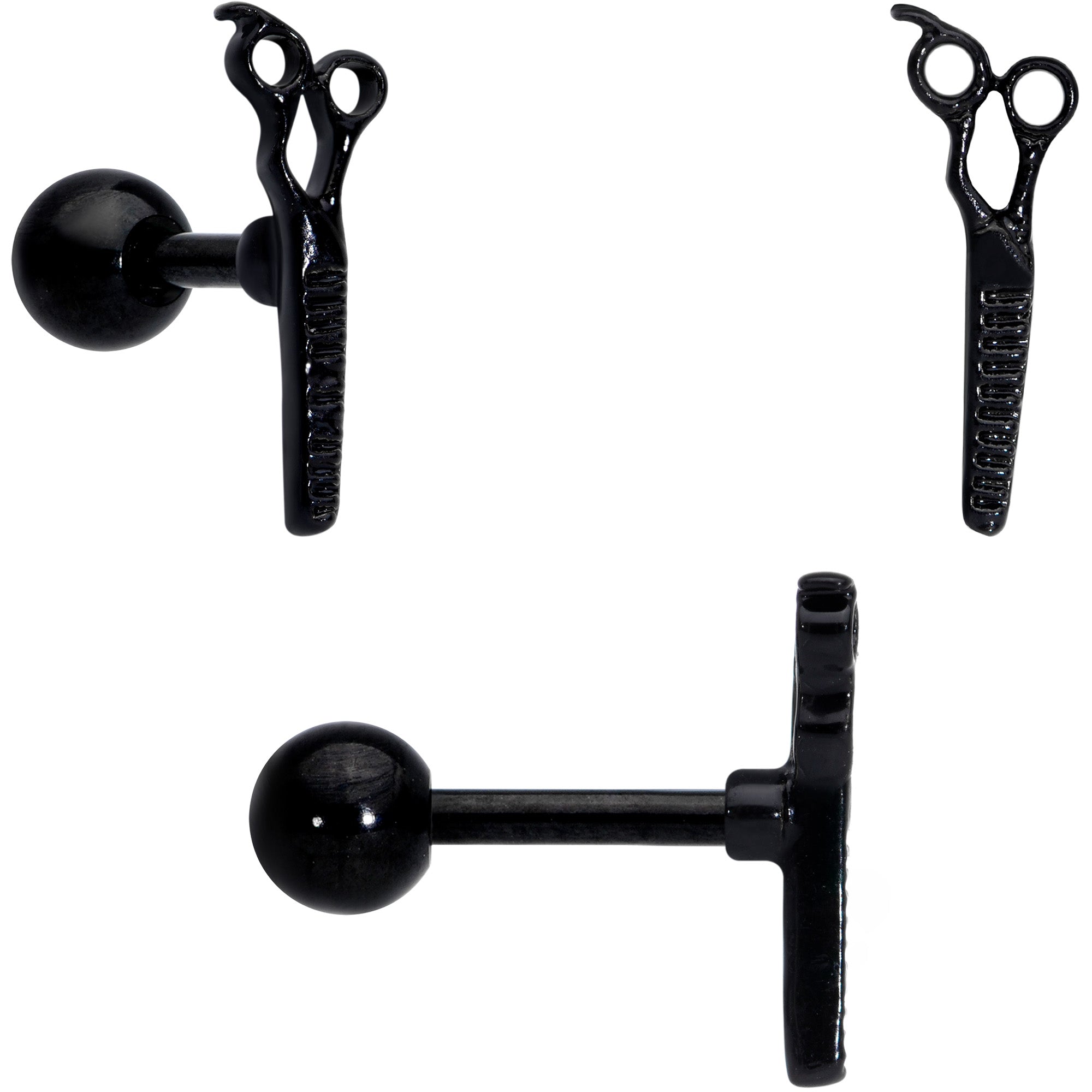 16G 1/4 Black Scissor Comb Hair Cartilage Tragus Earring Set of 3