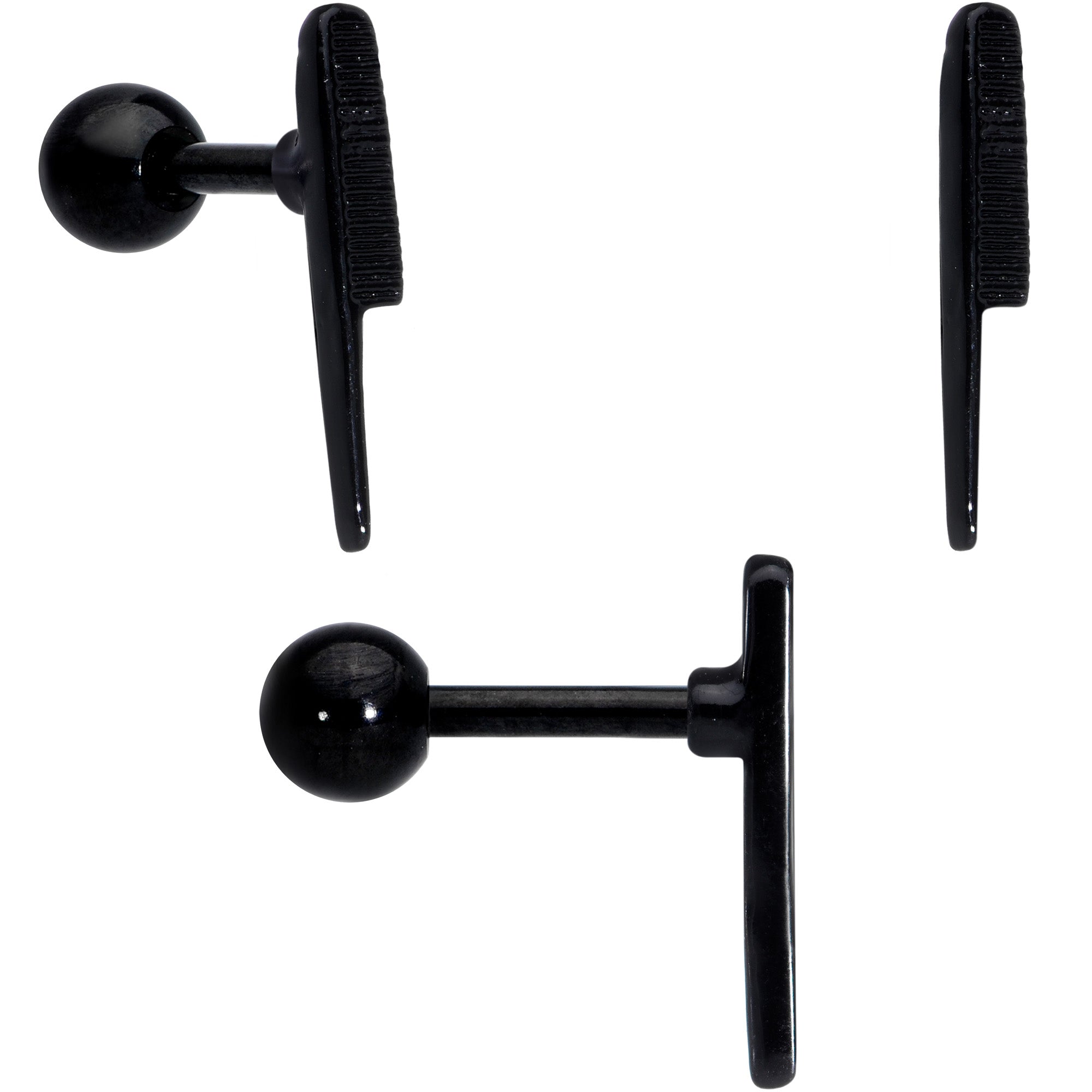 16 Gauge 1/4 Black Scissor Comb Hair Cartilage Tragus Earring Set of 3
