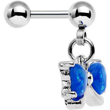 Dangle with feminine style without worrying about catching any eyes with this 16 gauge dangle cartilage earring thanks to its strikingly vibrant iridescent details. The 6mm straight barbell is made from durable 316L surgical grade stainless steel and supports the dangling design of a suspended bow charm with blue faux opal hearts making up the bow's sides.