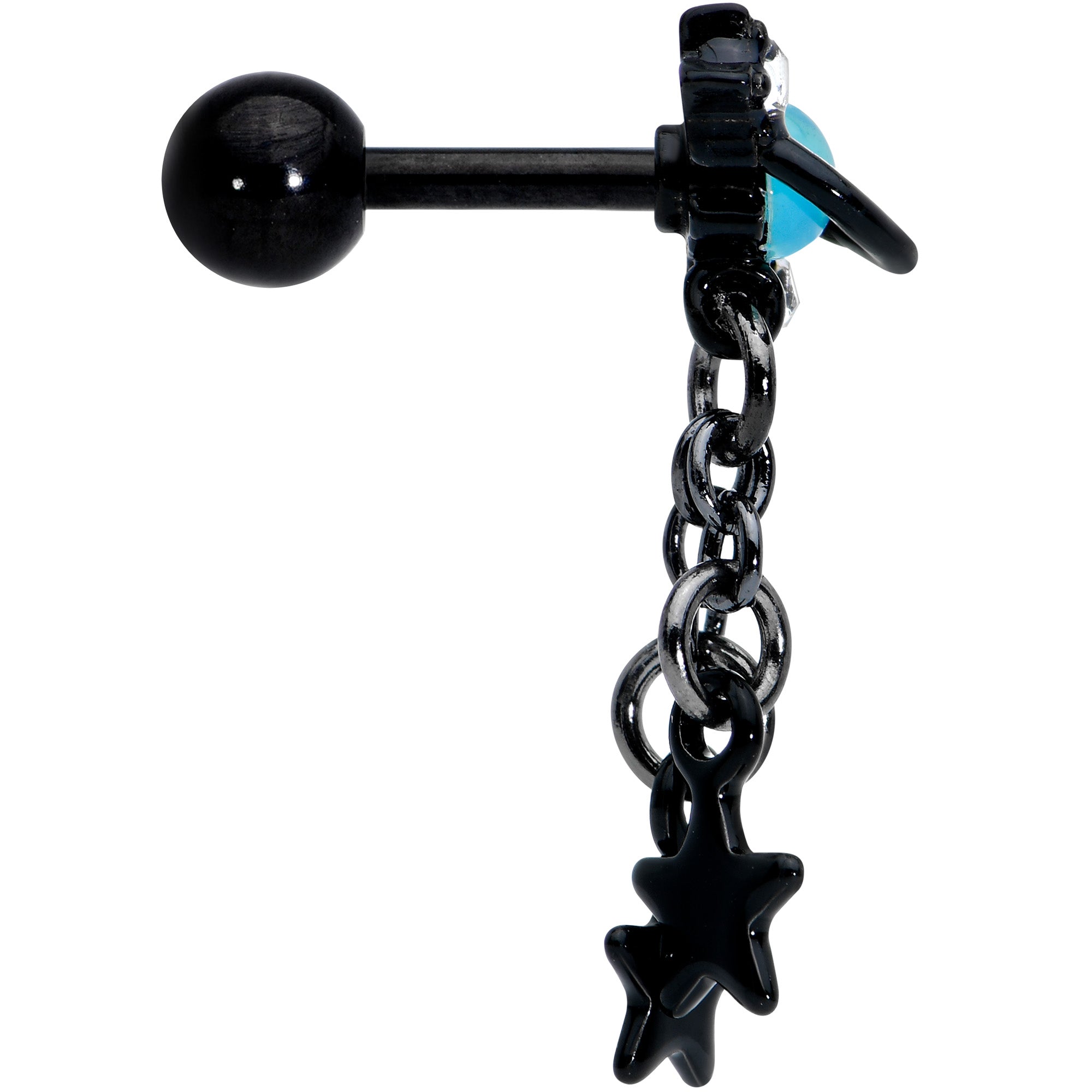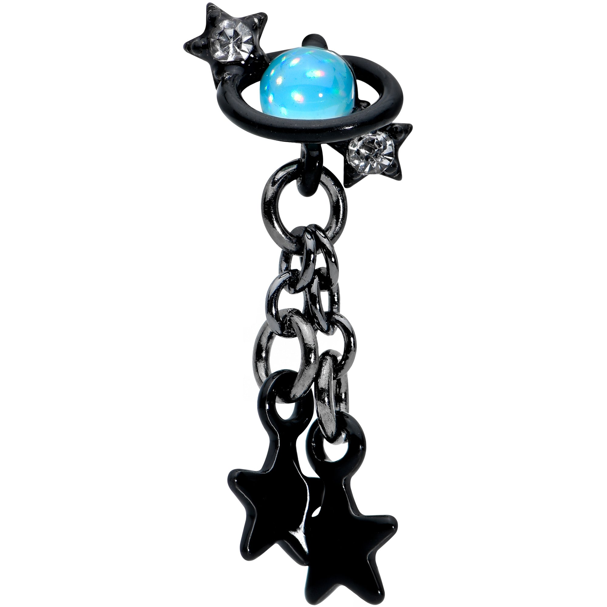 16 Gauge 1/4 Blue Gem Black Saturn Planet Star Dangle Cartilage Tragus