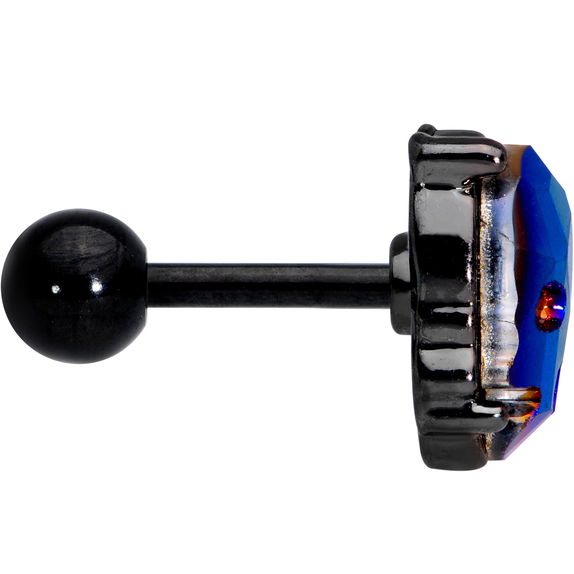 Creepy. cool, and totally captivating! This 16 gauge tragus stud is made with a 6mm black PVD over 316L surgical grade stainless steel straight barbell with a 4mm ball end. It features a faceted sugar skull charm composed of a single purplish-blue gem. And you can sport this skull in multiple piercings including tragus, helix, and some conch piercings. Perfect for Halloween, Dia de los Muertos, or any time you want to add some color to your cartilage piercing!