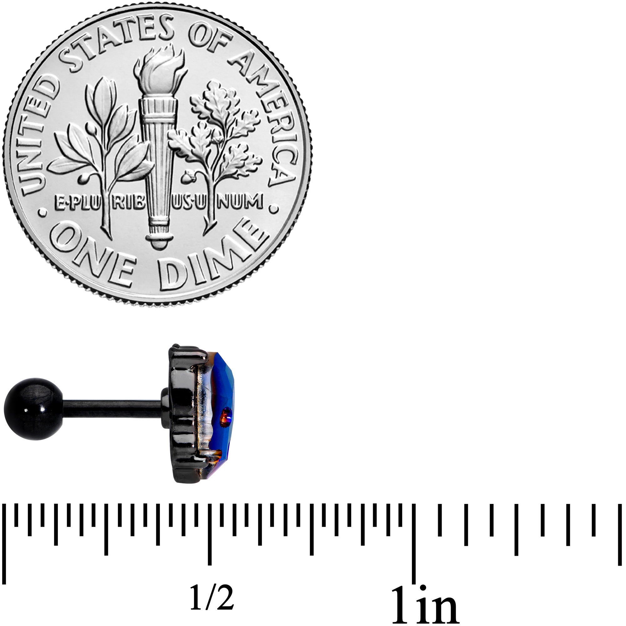 16 Gauge 1/4 Blue Gem Black Sugar Skull Halloween Cartilage Tragus