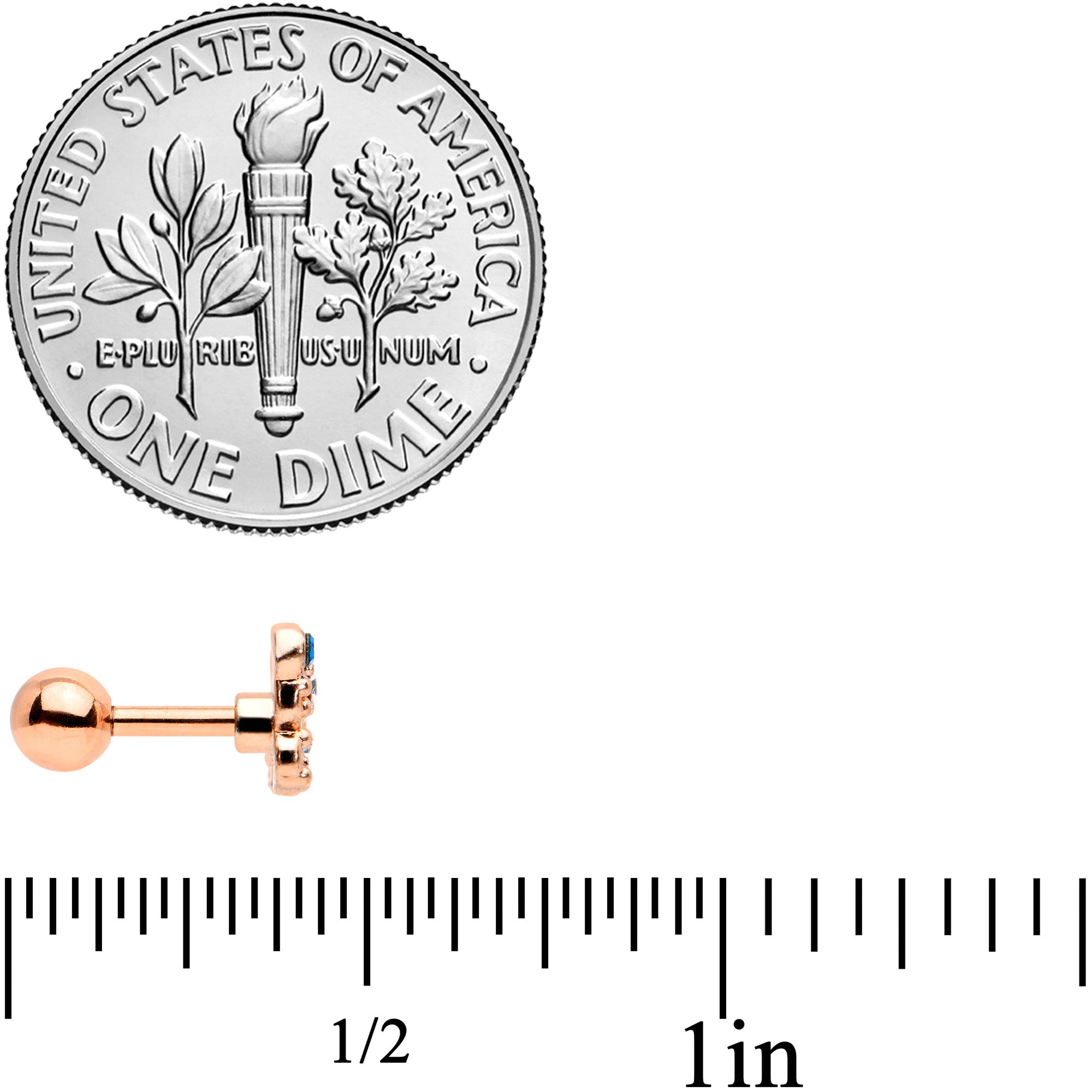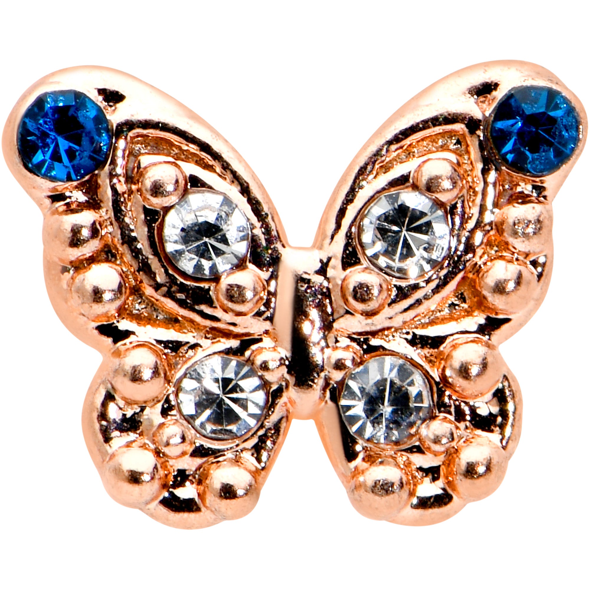 16 Gauge 1/4 Blue Gem Rose Gold Tone Butterfly Cartilage Tragus