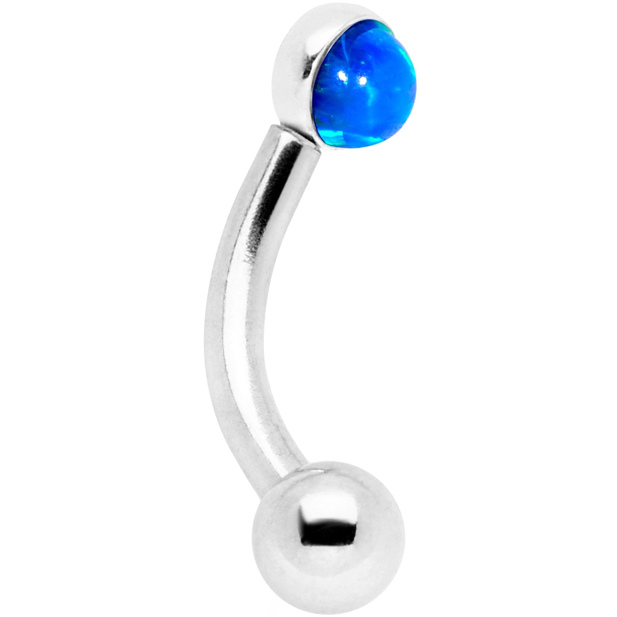 16 Gauge 1/4" Blue Synthetic Opal Flat Set Curved Eyebrow Rook Piercing