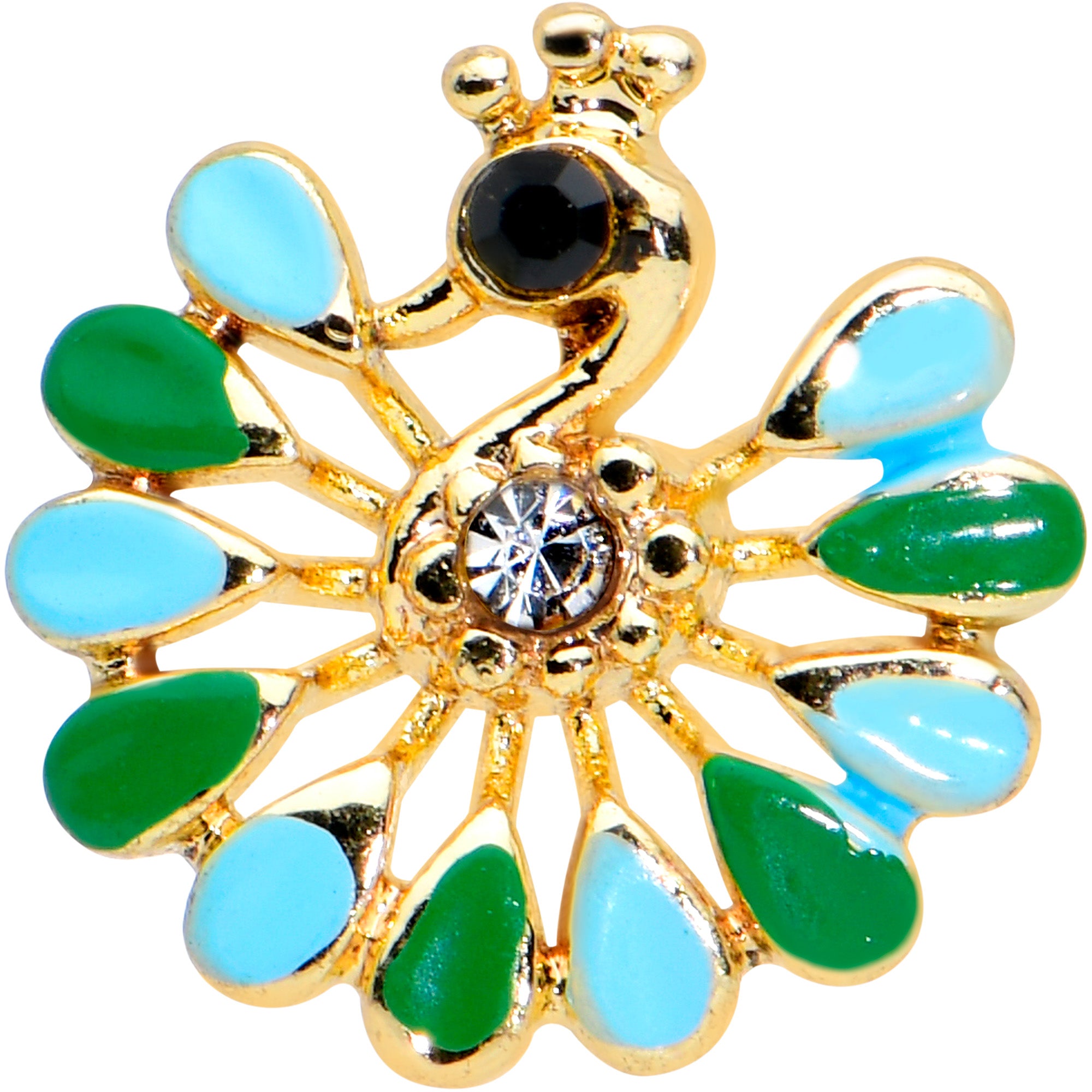 16 Gauge 1/4 Clear Black Gem Gold Tone Pretty Peacock Cartilage Tragus