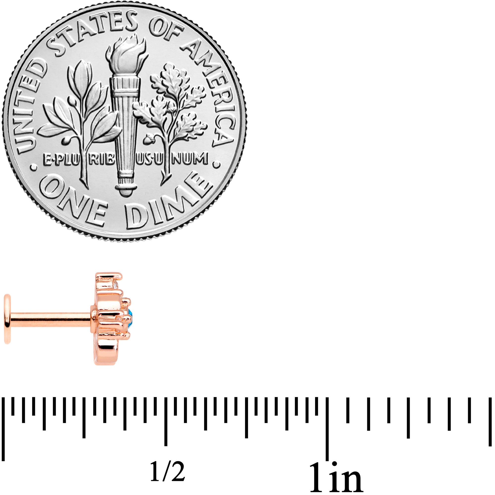 16 Gauge 1/4 Clear Blue Gem Rose Gold Hue Graceful Heart Labret Tragus