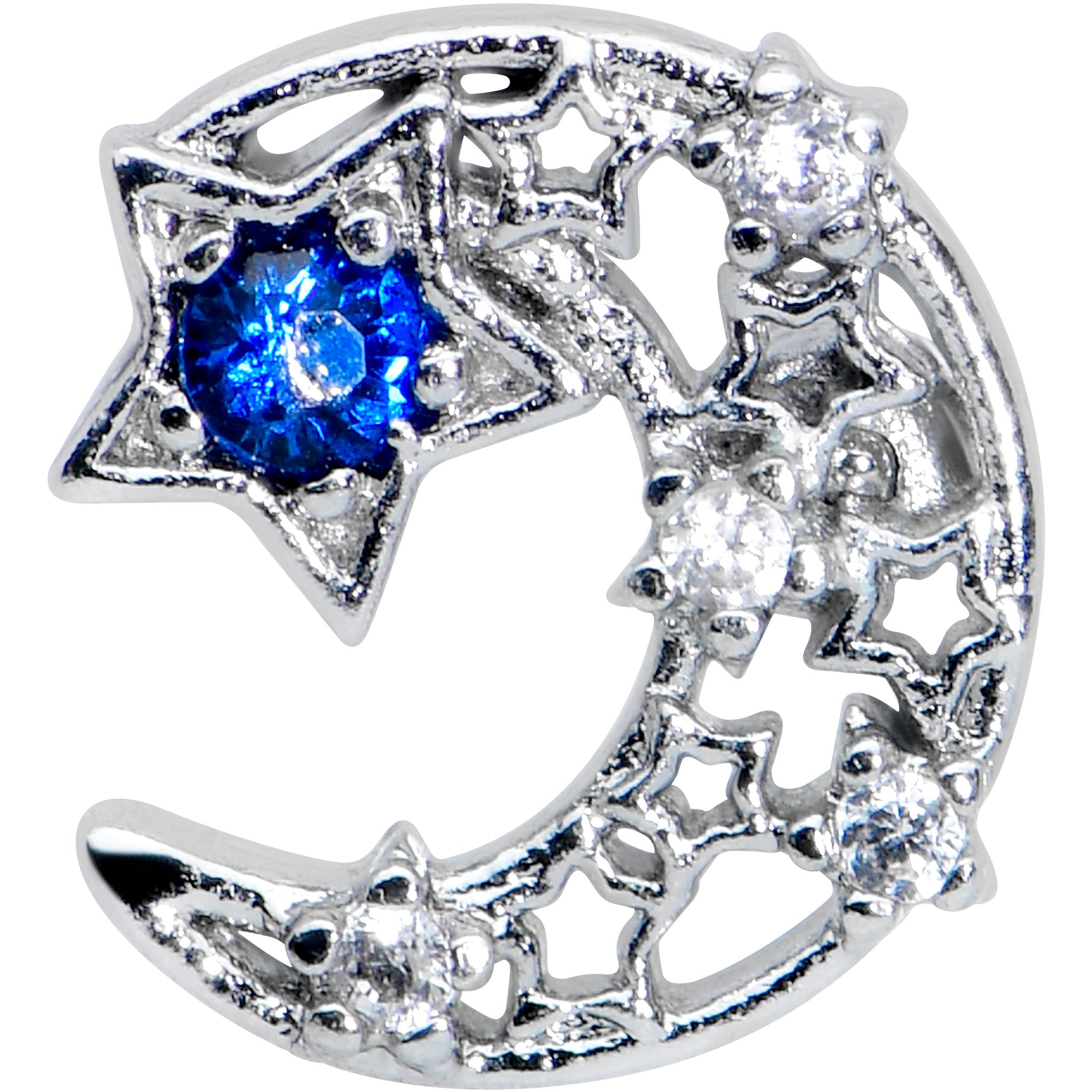 16G 1/4 Clear Blue Gem Star Crescent Moon Labret Monroe Tragus