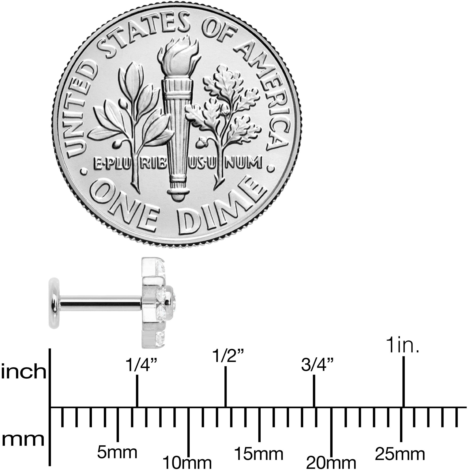 Hypoallergenic jewelry for sensitive skin16 Gauge 1/4 Clear CZ Gem G23 Titanium Flower Labret Monroe Tragus
