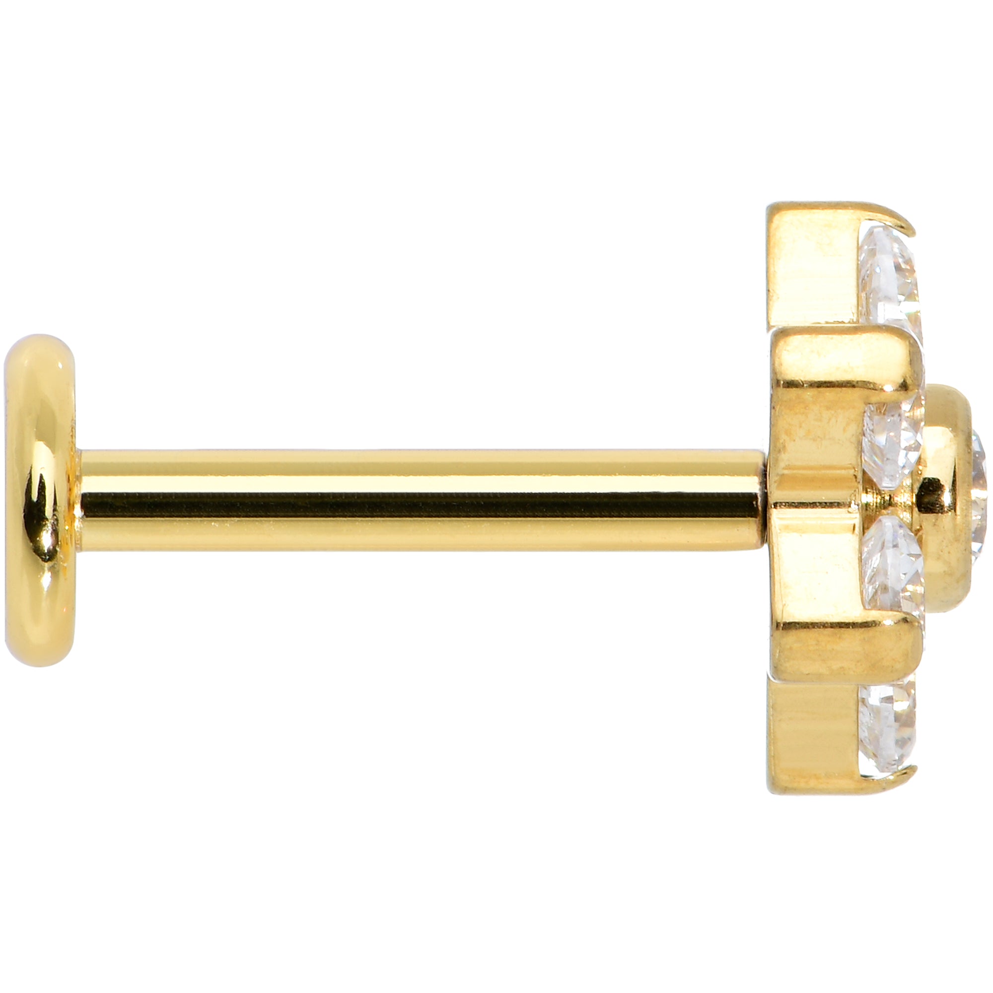 16G 1/4 Clear CZ Gem Gold Tone G23 Titanium Flower Labret Tragus