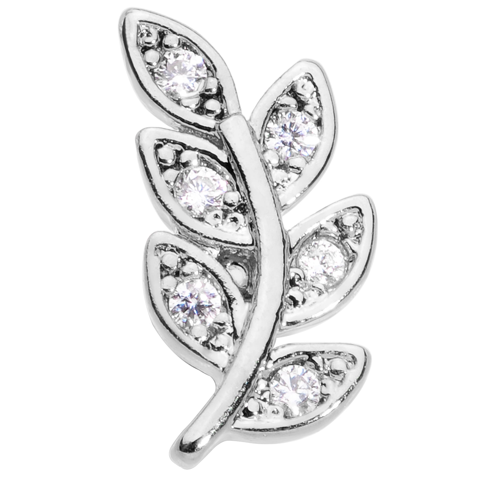 16 Gauge 1/4 Clear CZ Gem Leaf Internally Threaded Labret Tragus