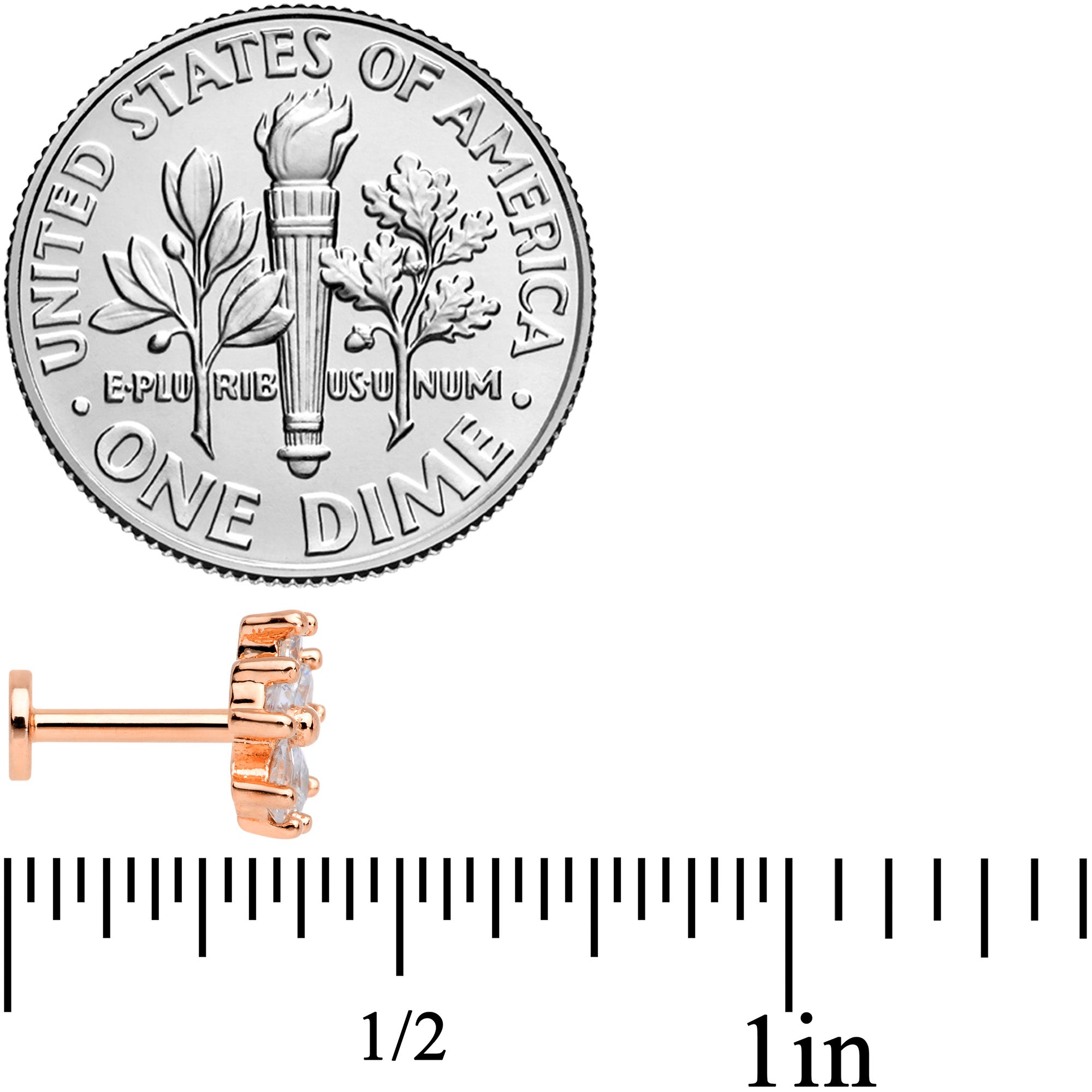 16 Gauge 1/4 Clear CZ Gem Rose Gold Tone Floral Labret Tragus Set of 3