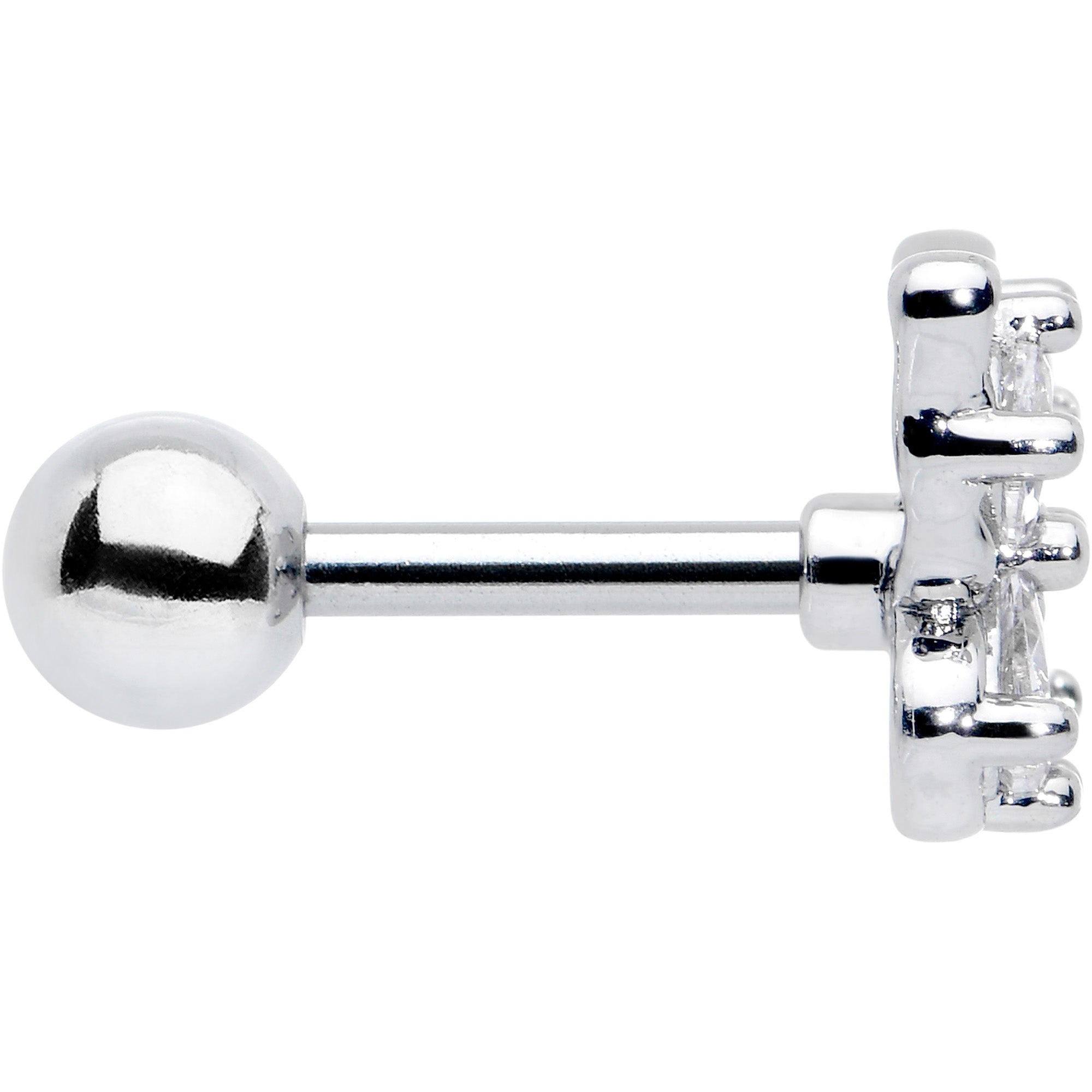 The butterfly on this 16 gauge tragus stud will make you want to go for baroque. It's made with a 6mm durable 316L surgical grade stainless steel straight barbell with a 4mm ball end. It features a butterfly charm, with wings set with large clear gems. The butterfly is further embellished with more clear gems for an ornate appearance and you can even rock it in multiple piercings including tragus, helix, and some conch piercings. This opulent butterfly cartilage piercing jewelry will make you want to fly.
