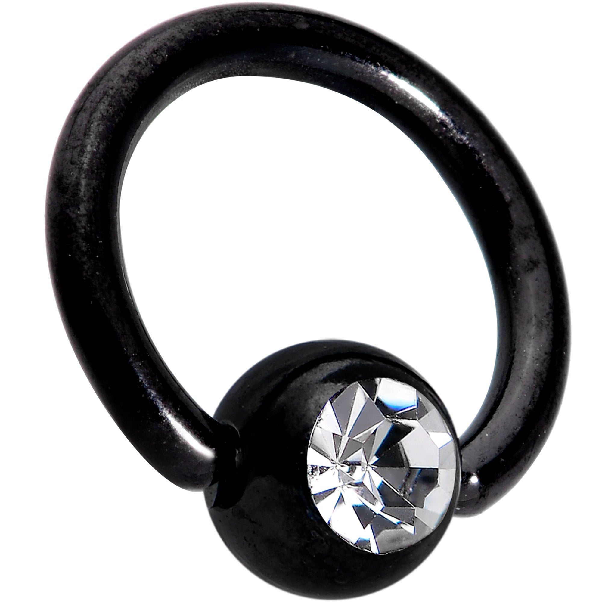 16G 1/4 Clear Gem Black BCR Captive Ring