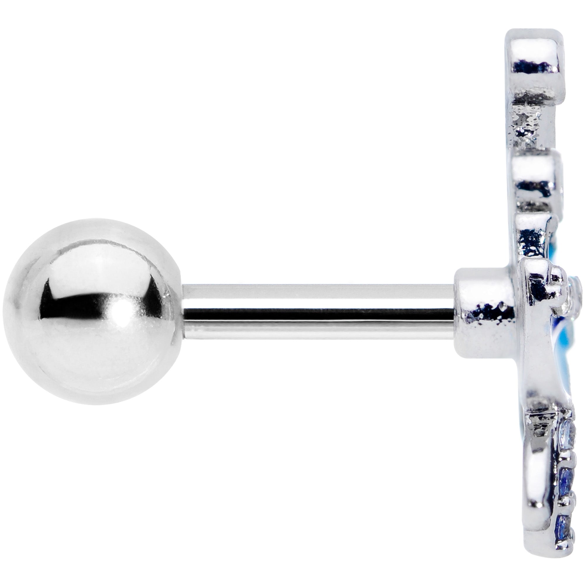 16G 1/4 Clear Gem Blue Butterfly Cartilage Tragus Earring