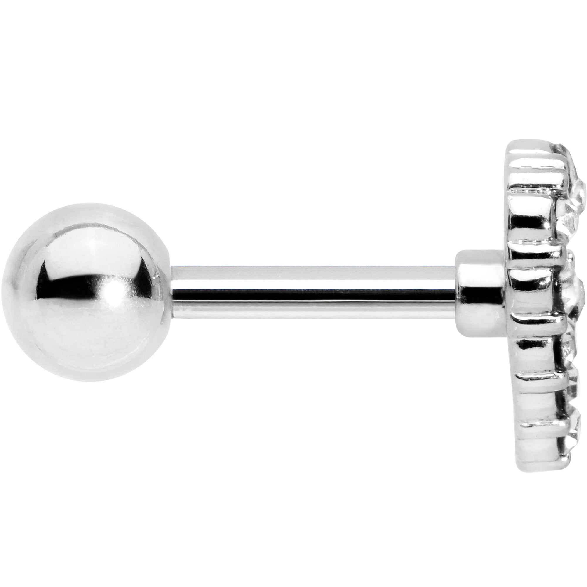 16 Gauge 1/4 Clear Gem Floral Hollow Heart Cartilage Tragus Earring