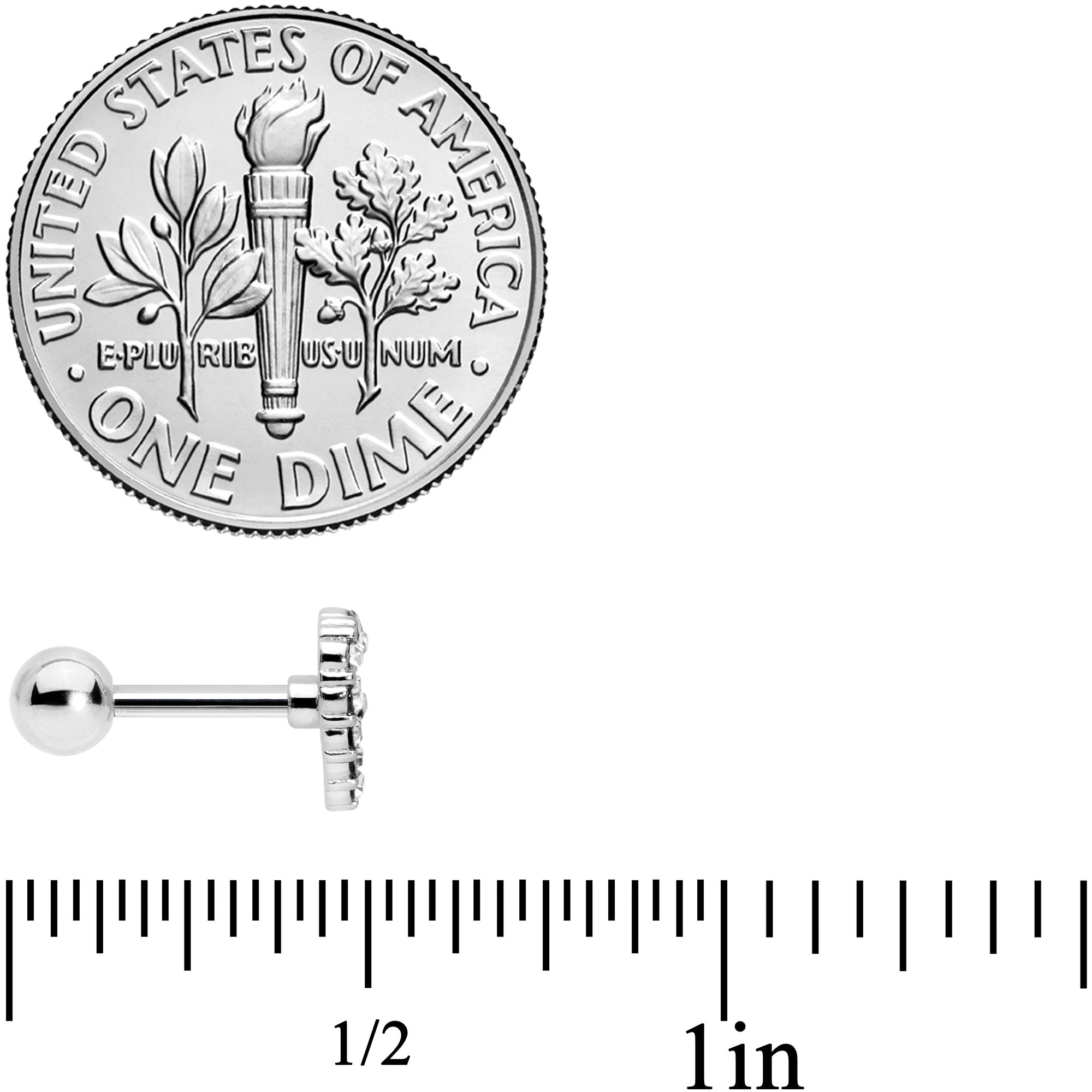 Keep your heart open and good things will bloom - like on this 16 gauge tragus stud! It's made with a 6mm durable 316L surgical grade stainless steel straight barbell with a 4mm ball end. It features a hollow heart charm, with one side of the heart set with clear gems. At the heart's center is a small openwork flower with a single clear gem at its center. You can even rock it in multiple piercings including tragus, helix, and some conch piercings. For the incurable romantic, this floral valentine's cartilage stud is sure to make you fall in love!