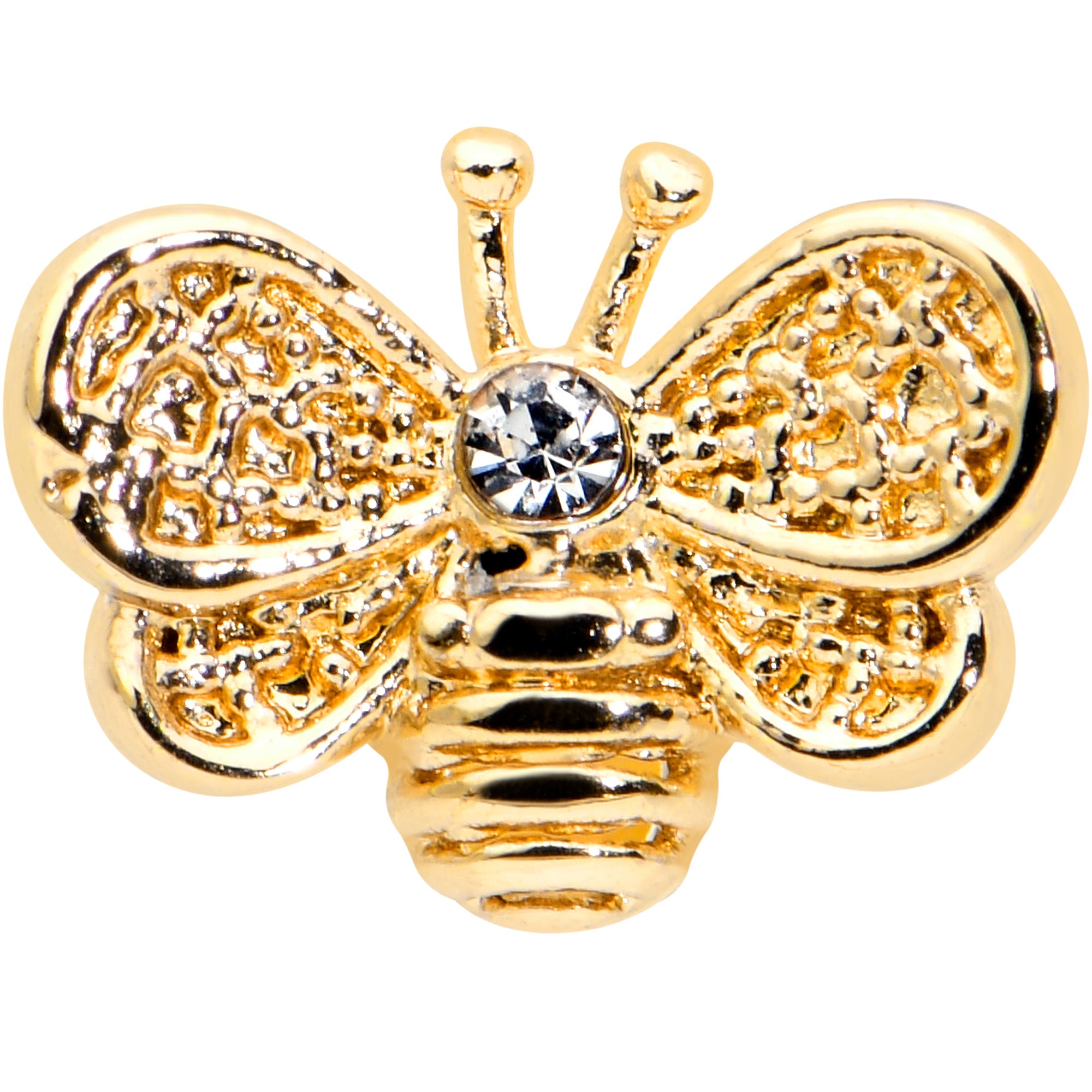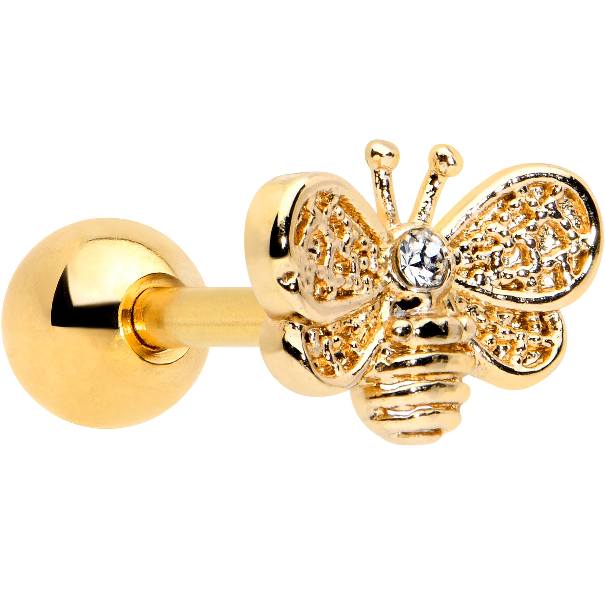 16G 1/4 Clear Gem Gold Tone Beauty Bee Cartilage Tragus Earring