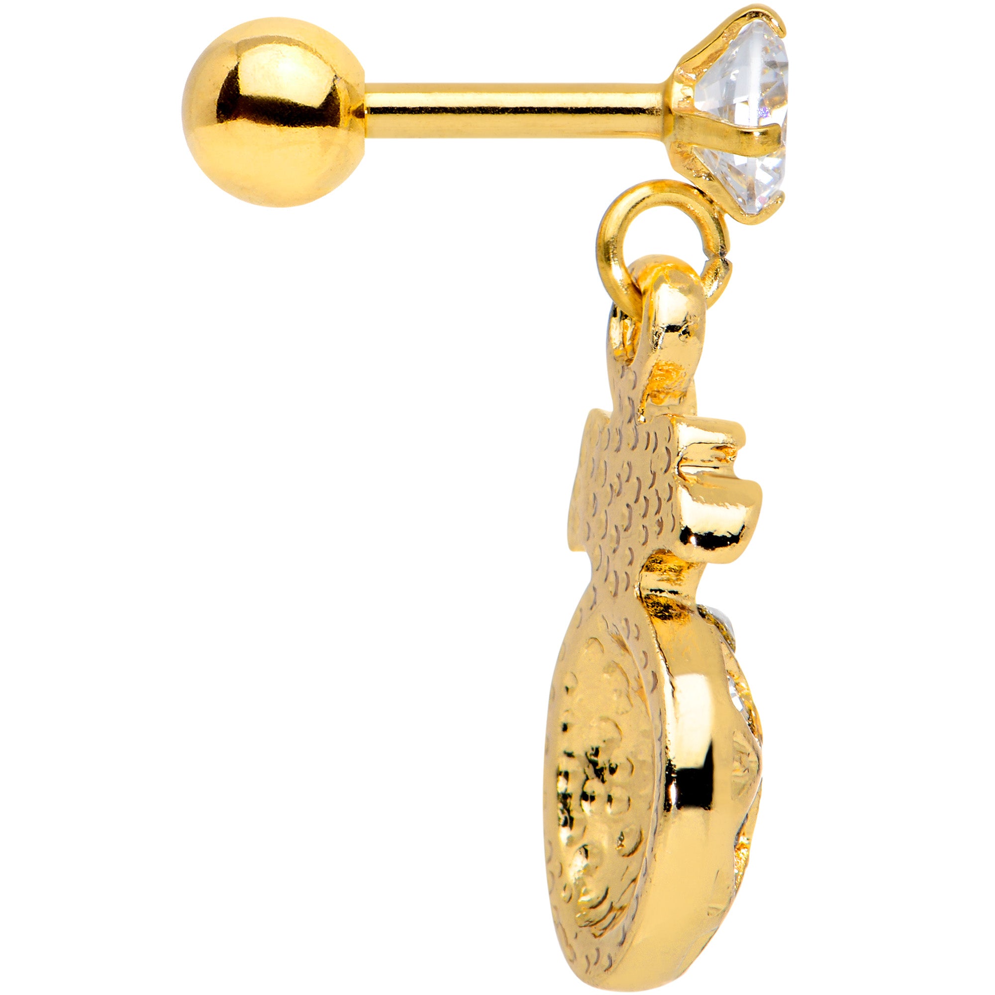 16 Gauge 1/4 Clear Gem Gold Tone Pineapple Dangle Cartilage Tragus