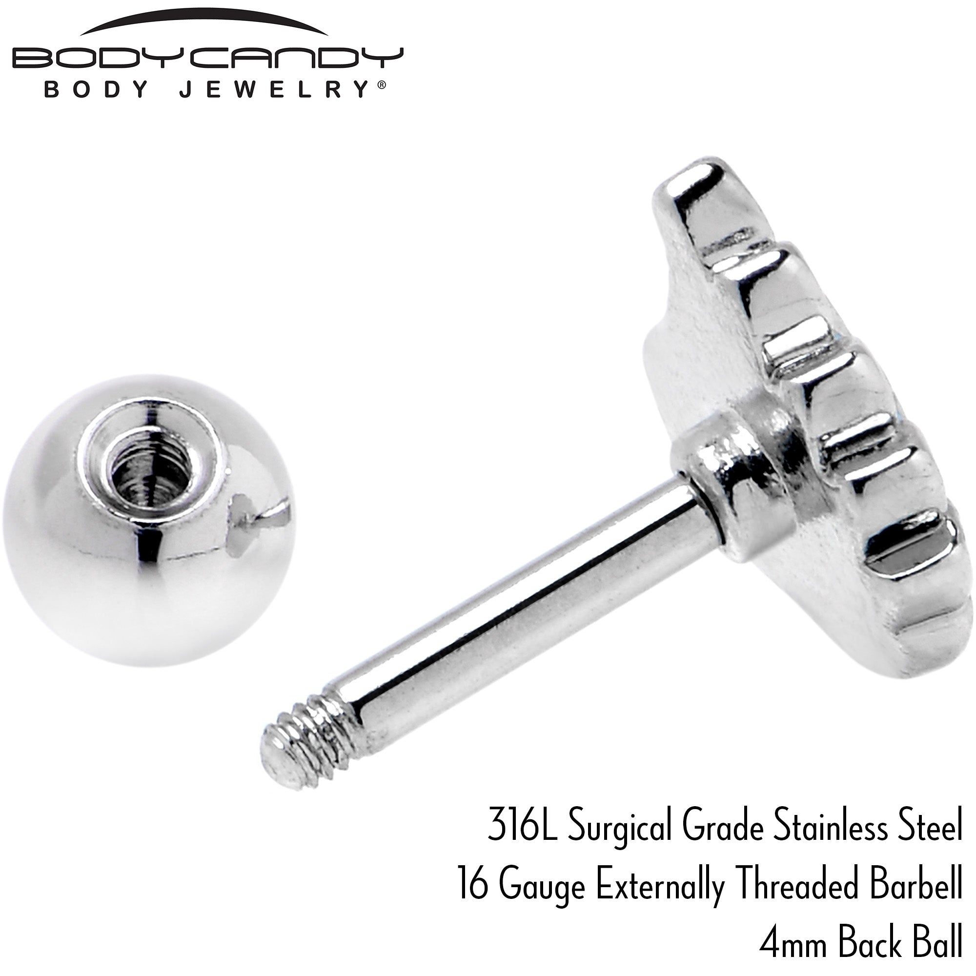 Give yourself a heavenly new look with this 16 gauge tragus stud. It's made with a 6mm durable 316L surgical grade stainless steel straight barbell with a 4mm ball end. It features a heart shaped charm featuring an angel's wings, with one side paved with clear gems. The other side features black inlay and simply styled feather details and you can rock it in multiple piercings including tragus, helix, and some conch piercings. Let your look and your spirit soar with this stylish and spiritual cartilage piercing jewelry.
