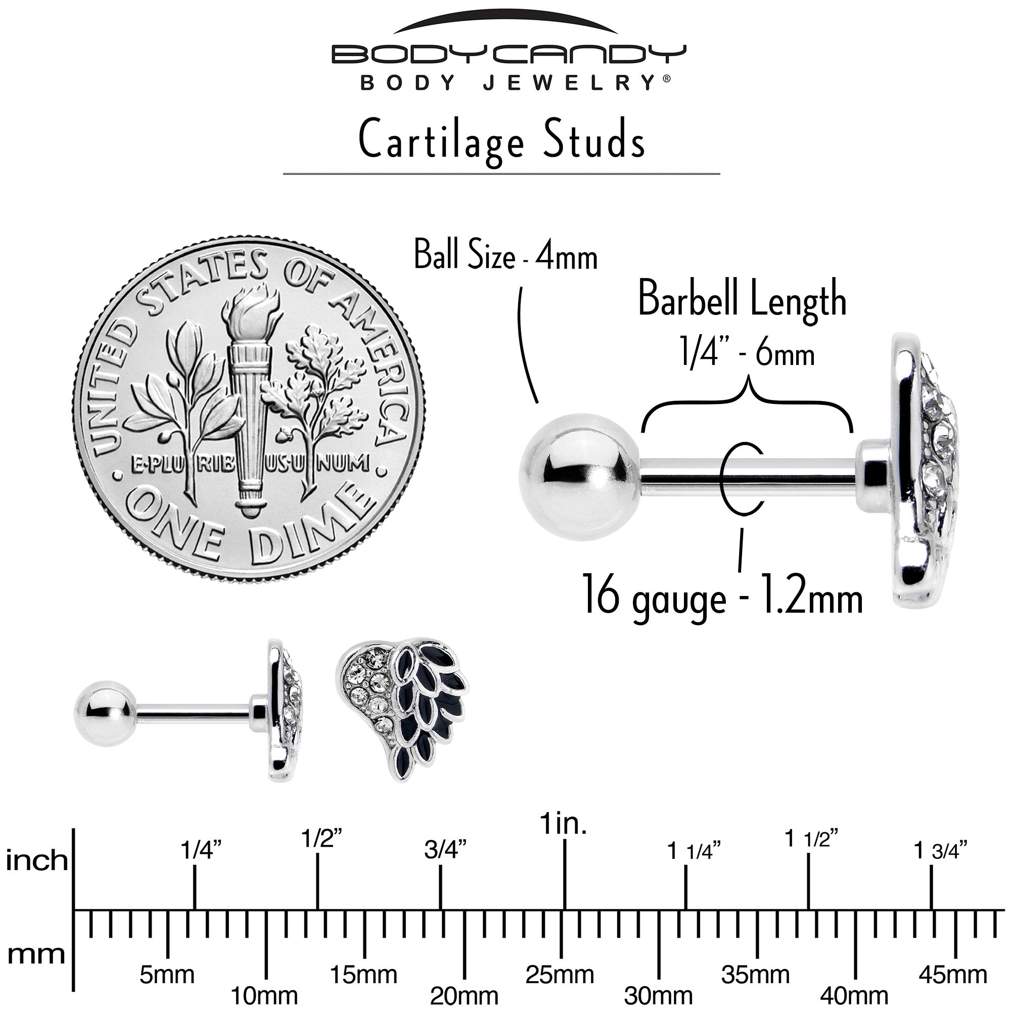 16G 1/4 Clear Gem Heavenly Heart Angel Wing Black Cartilage Earring