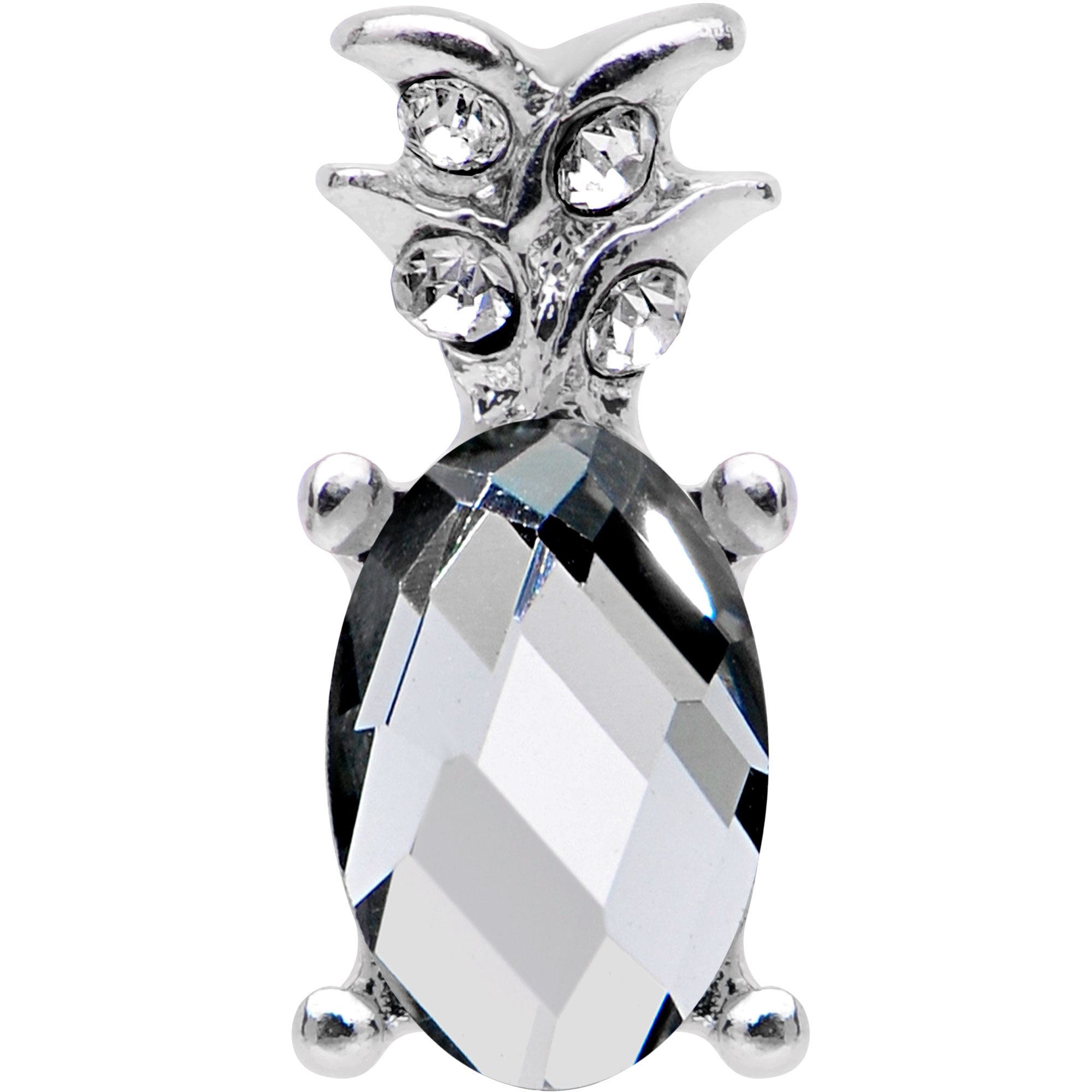 Nothing is as sweet, tasty, and natural as a plump pineapple. Now you can wear your favorite fruit all the time. This 14 gauge cartilage tragus piercing features a pretty pineapple charm formed by a beautiful clear gem. The pineapple charm, complete with a sprig of clear gem encrusted leaves at the top, is mounted on a 1/4" straight barbell made with 316L surgical grade stainless steel.