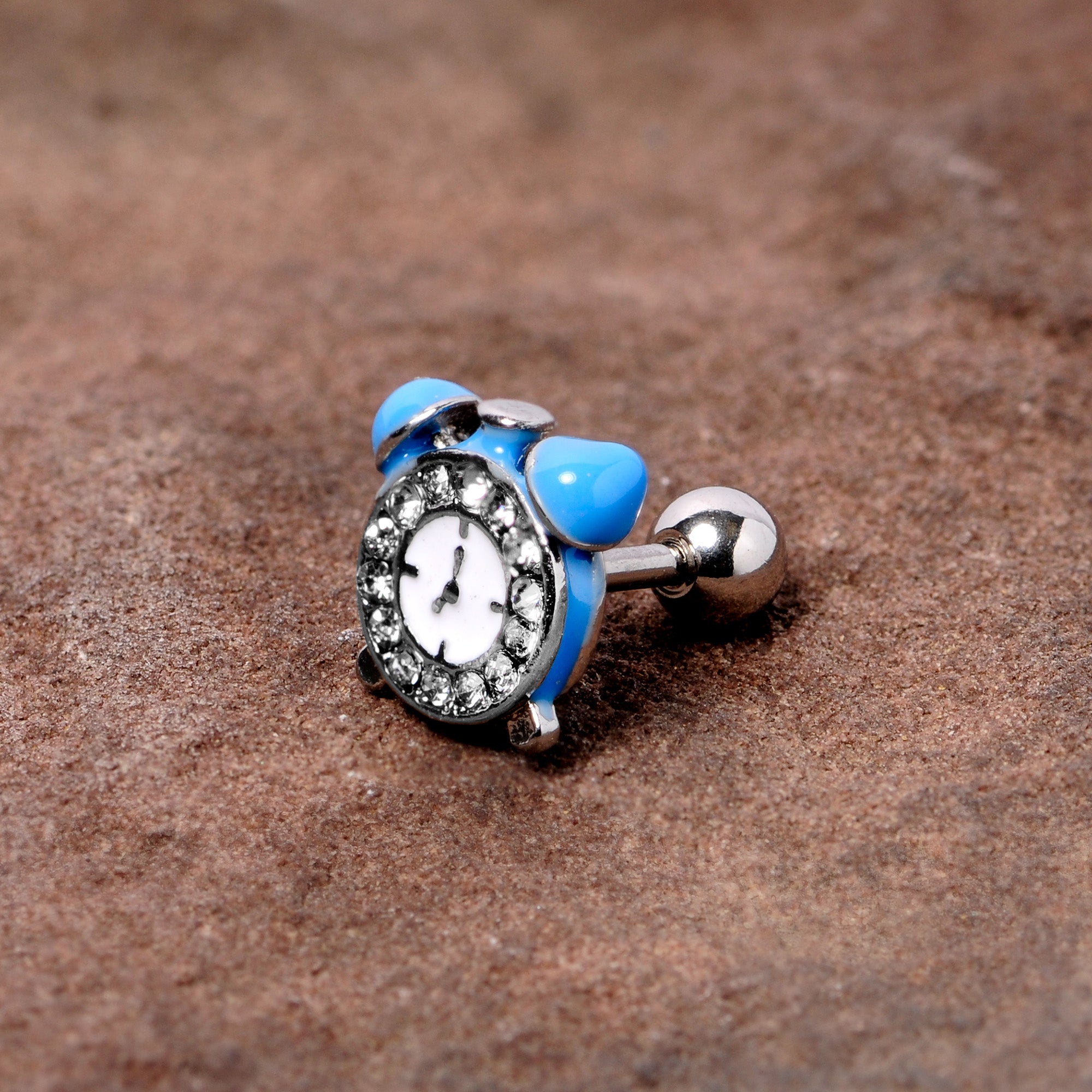 16G 1/4 Clear Gem Light Blue Alarm Clock Cartilage Tragus Earring