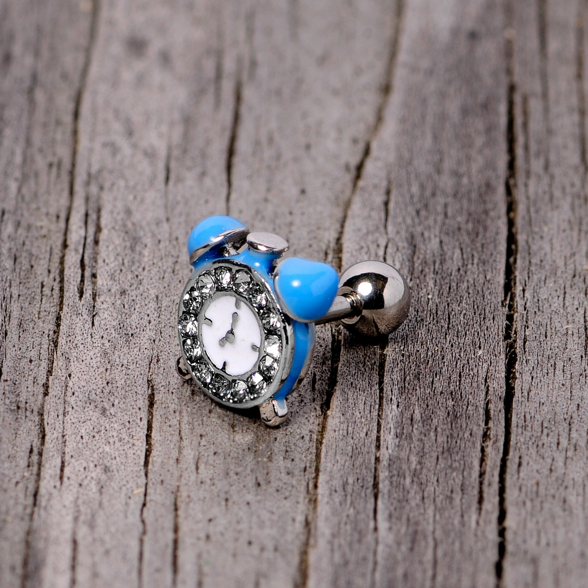 16 Gauge 1/4 Clear Gem Light Blue Alarm Clock Cartilage Tragus Earring