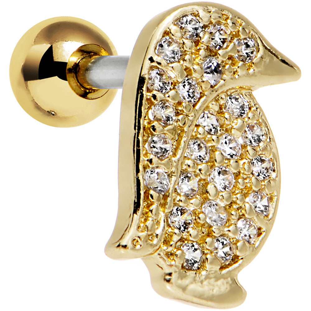 Add some bright eyed birdie beauty to your right cartilage when you wear this avian inspired tragus piercing. Made with 6mm surgical grade stainless steel straight barbell, this cartilage earring features a right ear design highlighted by a bright, perky little penguin set with clear gems that is sure to add a little arctic style to your tragus piercing.