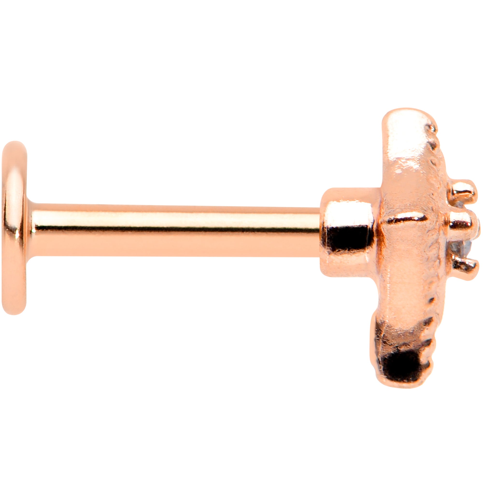 16G 1/4 Clear Gem Rose Gold Tone Edgy Rhombus Labret Tragus