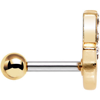 Get your spiritual side and your fashionista side on the same playing field with this 16 gauge tragus cartilage earring. The 6mm long straight barbell is made from gold anodized titanium over durable 316L surgical grade stainless steel and supports the decorated hamsa hand charm design with sparkling clear gem details.
