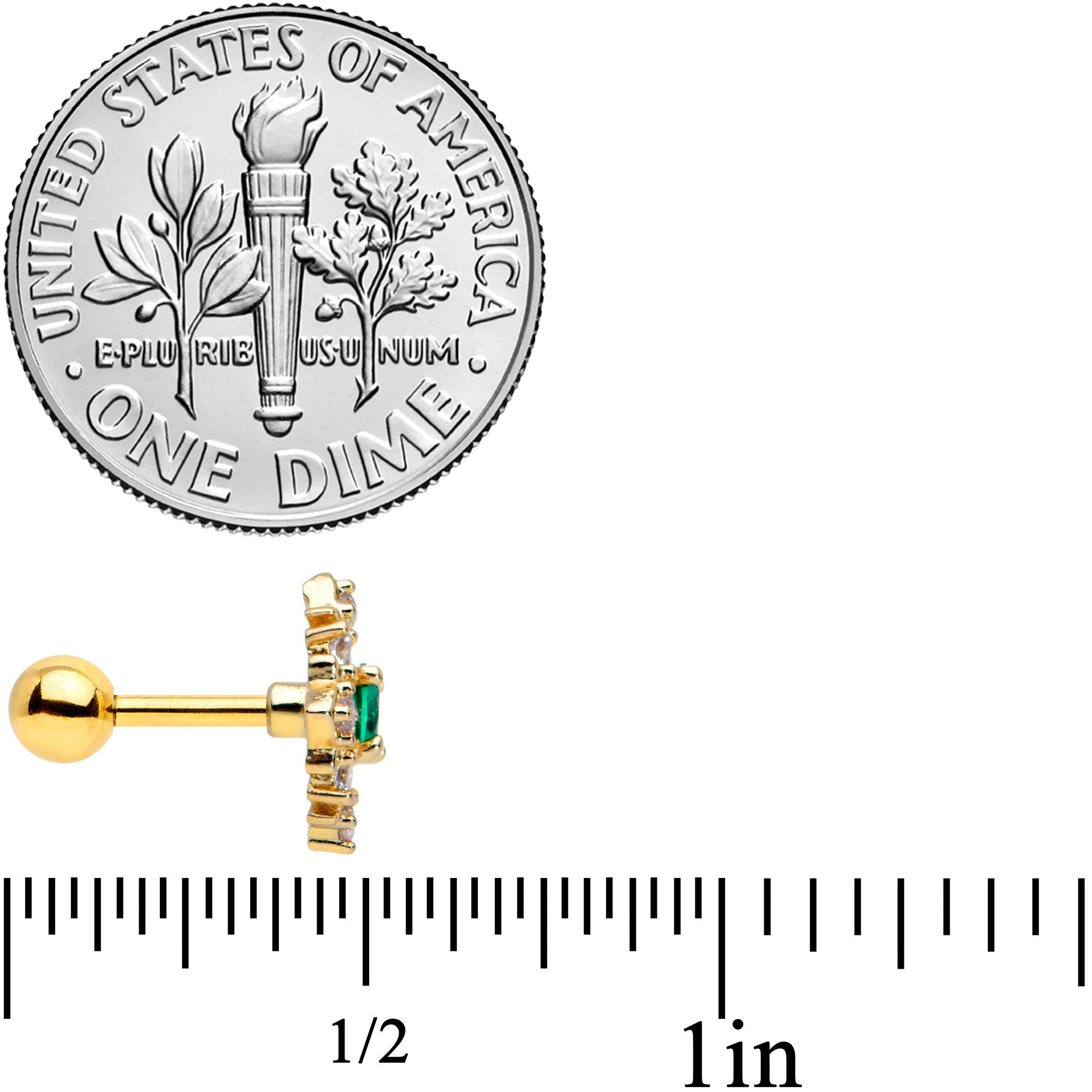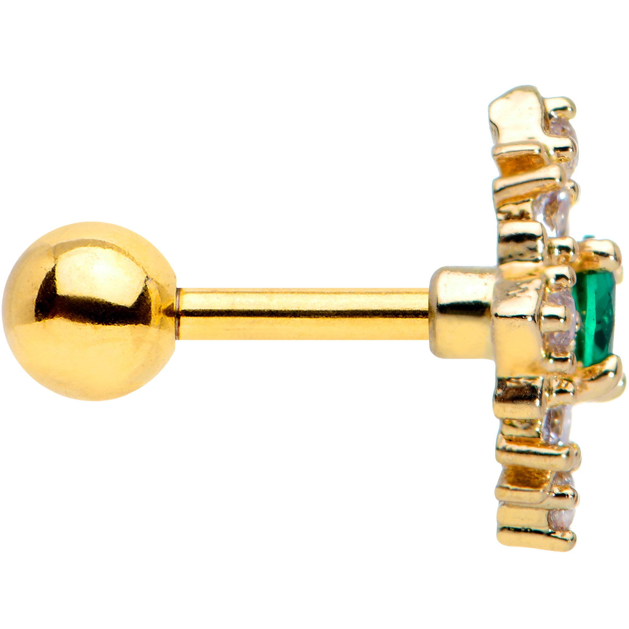 16G 1/4 Clear Green Gem Gold Tone Art Deco Style Cartilage Tragus