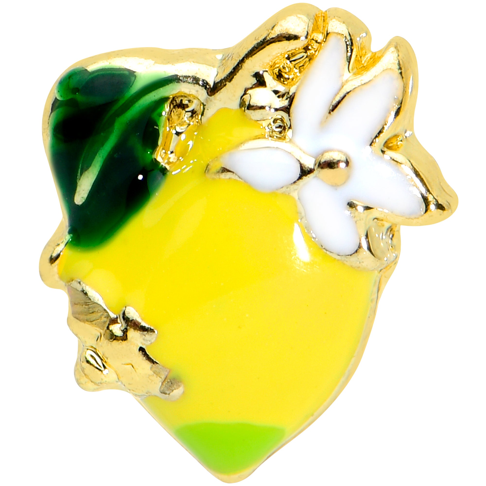 When life gives you a lemon....wear it in your piercings with this 16 gauge cartilage ring! It's made with a 6mm gold tone PVD over 316L surgical grade stainless steel straight barbell with a flat disc end. It features a bright yellow lemon charm with small white flower and a tiny bee. And you can rock this fruit in multiple piercings including tragus, helix, and some conch piercings. You won't have any reason to be a sourpuss with this lovely lemon tragus jewelry!
