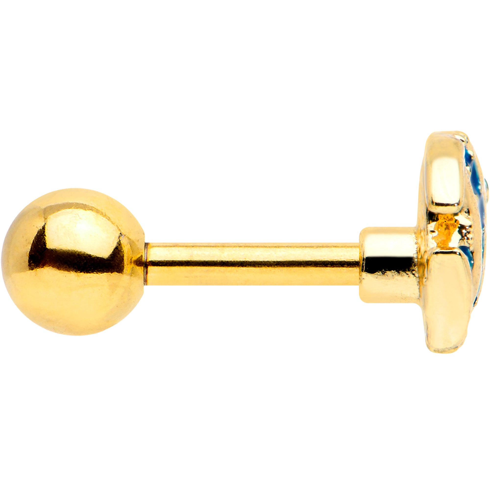 16 Gauge 1/4 Gold Tone Blue Adorable Angelfish Cartilage Tragus